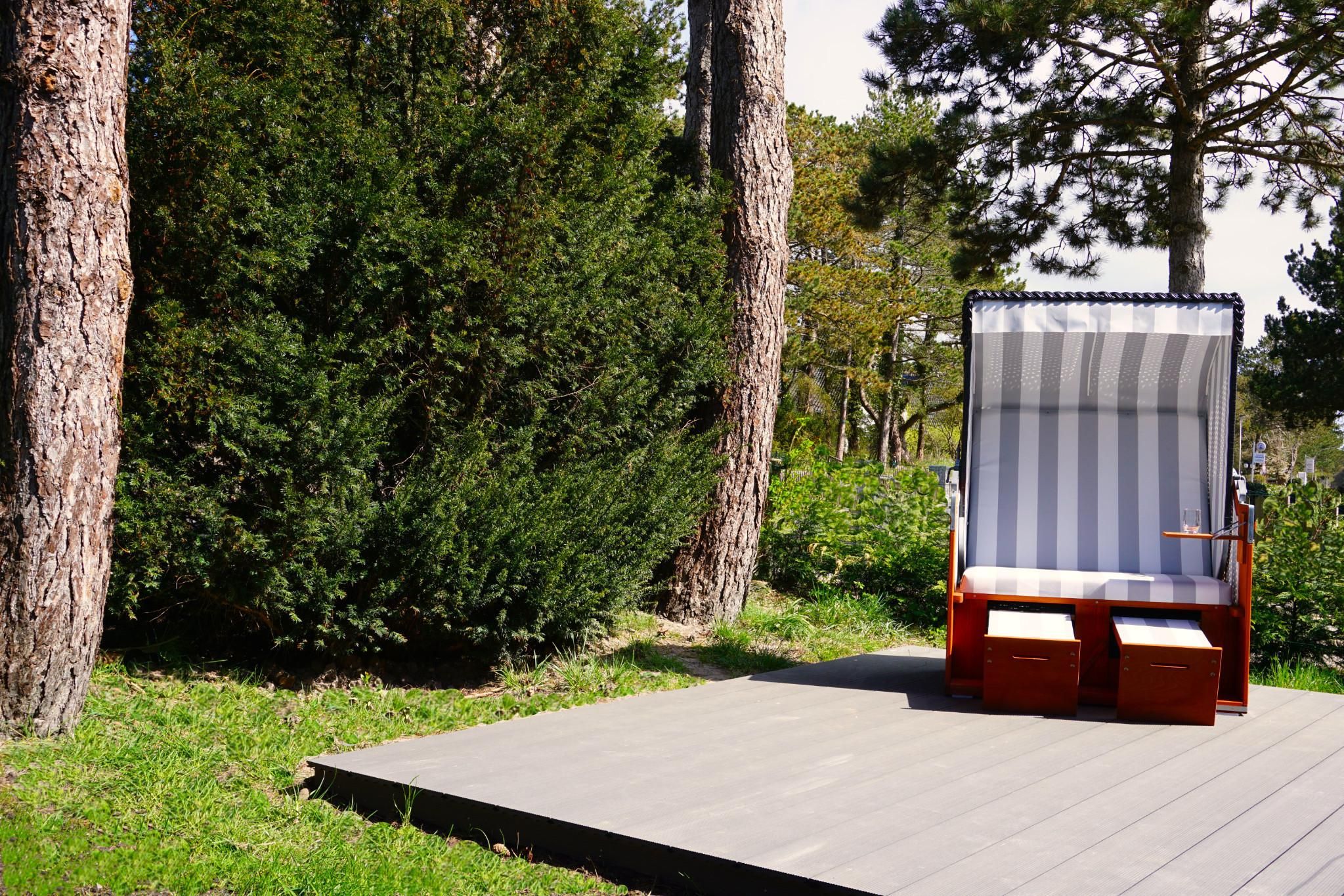 Die Ferienwohnung Strandmuschel Garden Suite im Erdgeschoss (96 m²) bietet Platz für bis zu 6 Personen (geeignet für maximal 3 Erwachsene und 3 Kinder) und besticht durch das Wohlfühl-Bad mit Walk-In-Dusche, die Terrasse mit eigenem Garten, eine hochwertige vollständige Ausstattung, einen XXL-Kühlschrank und kostenfreies WLAN.