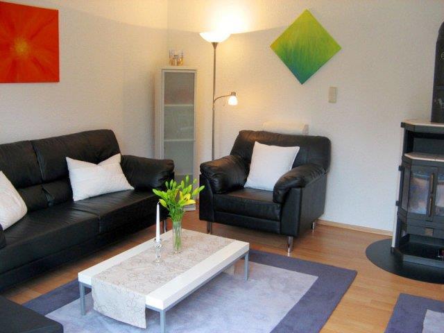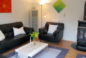 Ein Doppelzimmer, ein Zweibettzimmer sowie ein Reisebett stellen wir Ihnen im Obergeschoss zur Verfügung. Wir bieten Ihnen im Erdgeschoss unseres Ferienhauses eine stilvolle Wohnzimmereinrichtung mit LCD-TV und anschließendem Kamin. Die moderne Wohnküche ist mit diversen elektronischen Geräten und das helle Badezimmer mit Dusche und WC ausgestattet. Für die kleinen Gäste stehen 1 Babyreisebett und 1 Kinderhochstuhl bereit.