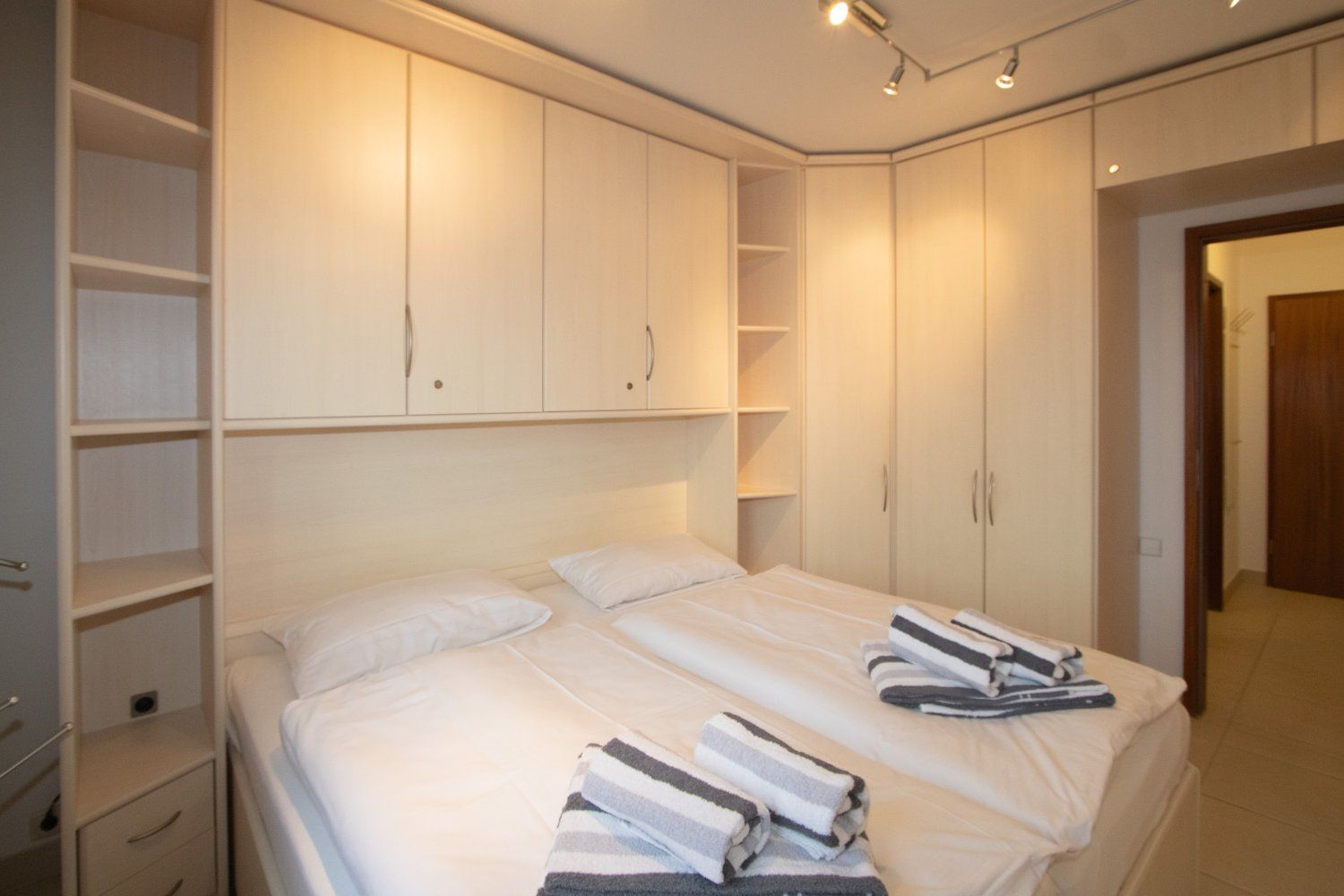 Diese helle Erdgeschoßwohnung verfügt über 1 Schlafzimmer und einem großem Wohnbereich mit 2 Einzelschrankbetten die im Wohnzimmerschrank integriert sind. Das Badezimmer ist modern und hell eingerichtet. Die Küche verfügt über sämtliche Utensilien, alles was man zum Kochen braucht. Die Wohnung wird als Nichtraucherwohnung angeboten. Wer rauchen möchte, der nutzt bitte die Terrasse.
