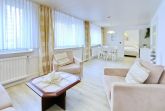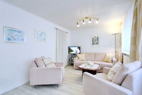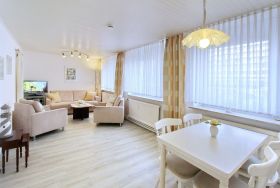 Gepflegte 2-Zimmer-Wohnung im Herzen von Westerland - sie befindet sich in der 1. Etage zur Westseite in einem mehrstöckigen Appartementhaus in unmittelbarer Nähe des Hauptstrandes und des Stadtzentrums. Der Wohnraum ist mit einer gemütlichen Couchgarnitur, 2 Sesseln und einem Essplatz mit 4 Stühlen ausgestattet - die Couchgarnitur ist ausziehbar zu einem Doppelbett. Im Schlafzimmer finden Sie ein großzügiges Doppelbett und ein begehbaren separaten Kleiderschrank vor. Badezimmer mit Dusche/WC, Waschtisch und Handtuchheizkörper. In der separaten Küche finden Sie ein Ceran-Kochfeld mit 4 Platten, einen Backofen, einen Geschirrspüler und ein Kühlschrank mit Gefrierfach. Ein Hotspot im Haus ermöglicht Ihnen einen kabellosen und kostenfreien Zugang zum Internet (WEG-AD3 - Passwortfrei - ohne Gewähr). Nichtraucherwohnung. Haustiere nicht gestattet. Wohnungsgröße ca. 45 m².