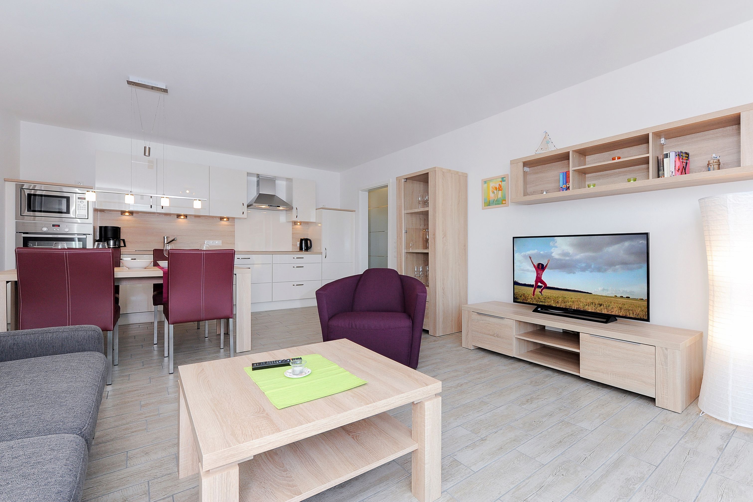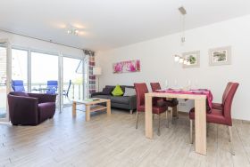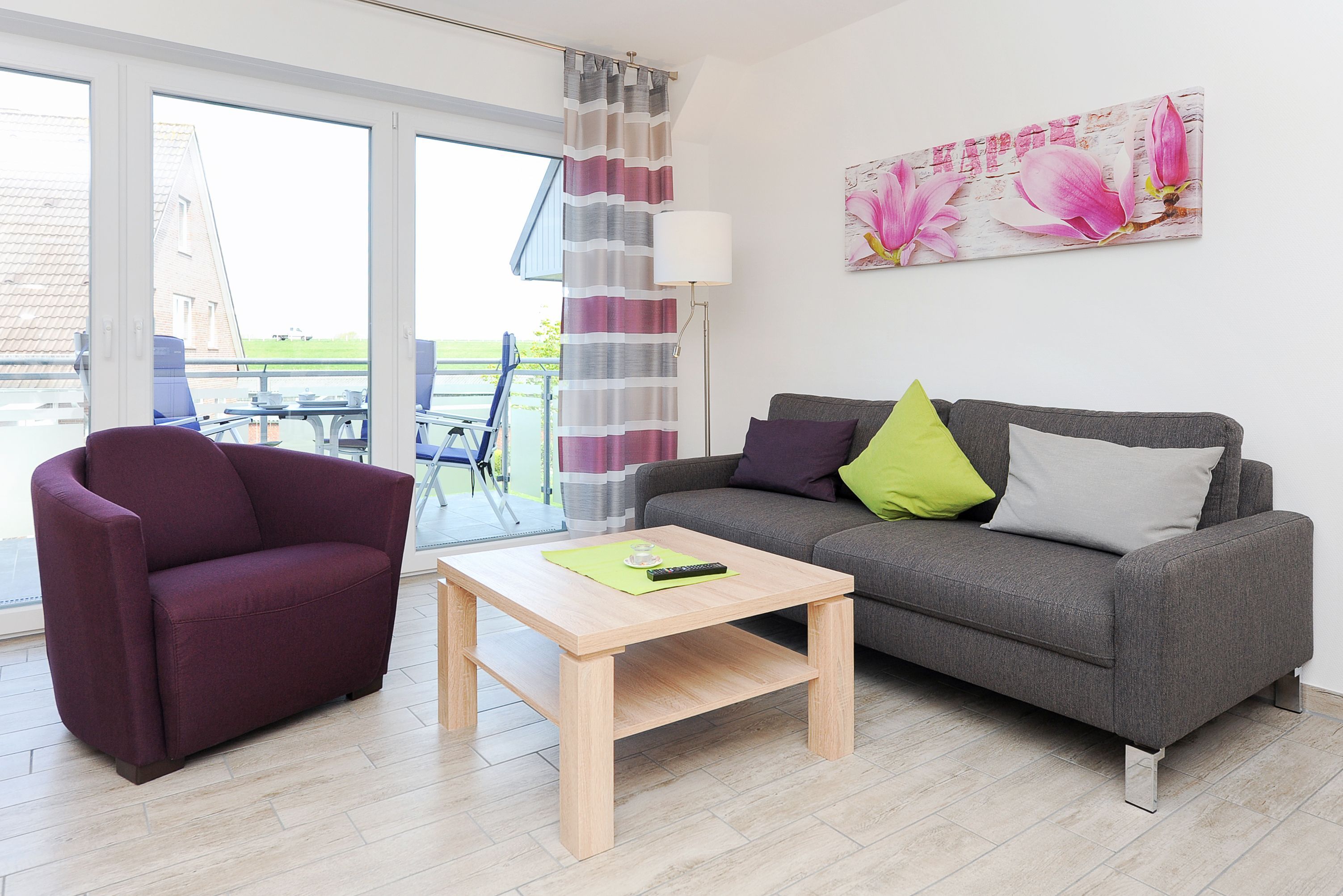 Die großzügige und ungefähr 76 Quadratmeter große Ferienwohnung Strandflieder in der „Residenz an der Nordseetherme“ für zwei bis vier Personen ist auf sehr hohem Standard, gemütlich-modern, sehr komfortabel und freundlich eingerichtet und gestaltet sowie technisch auf hervorragendem Stand ausgerüstet.