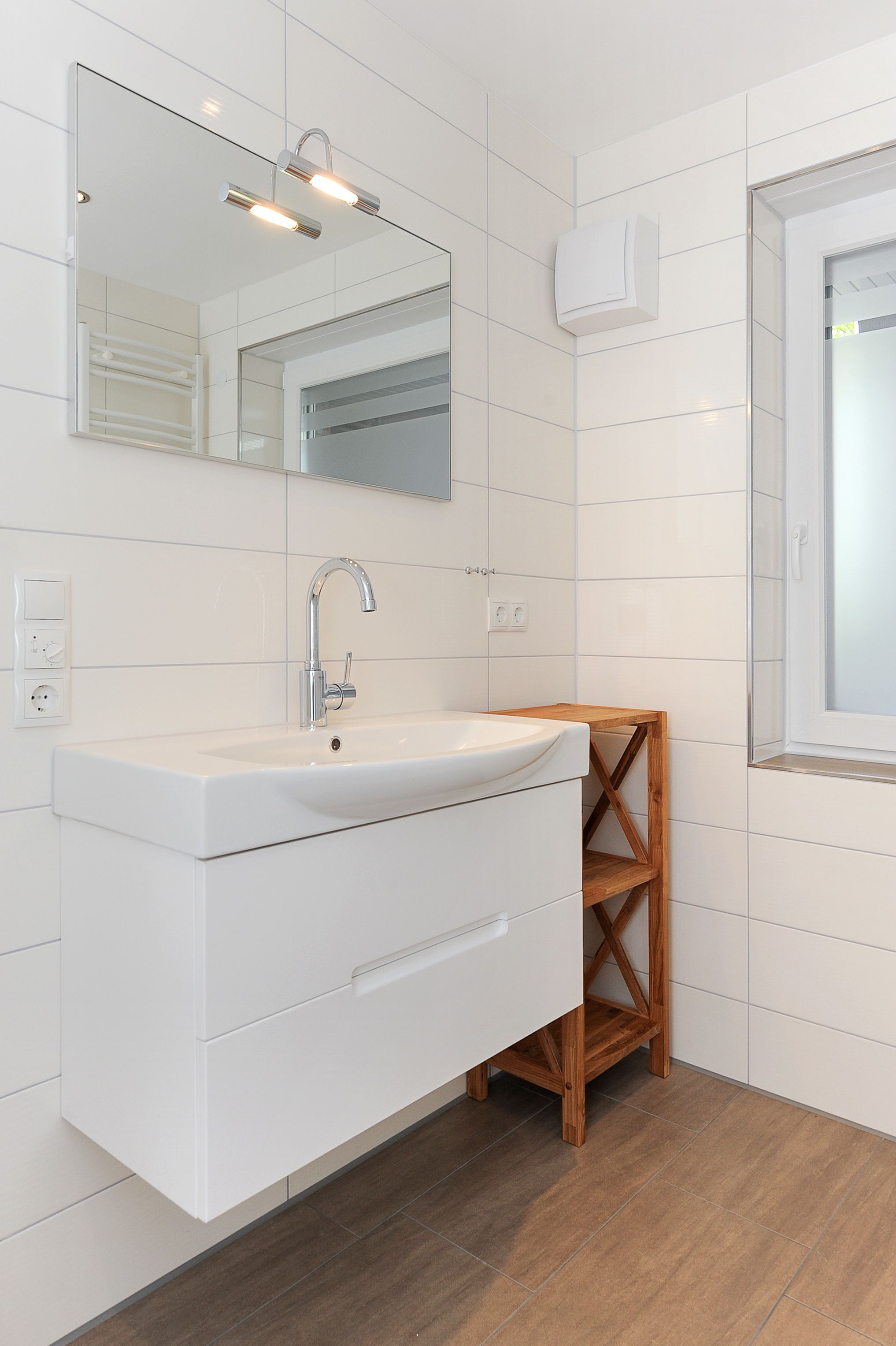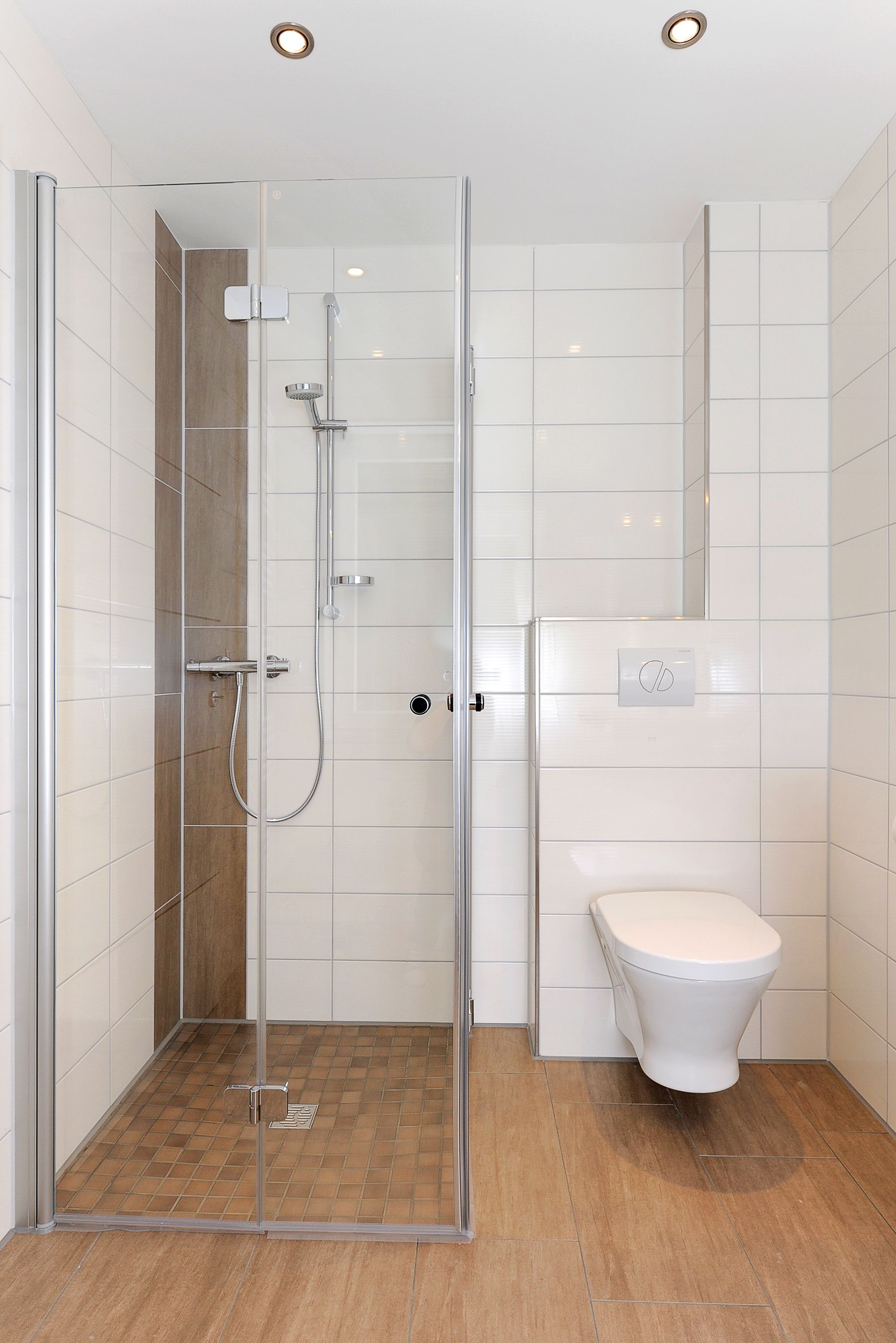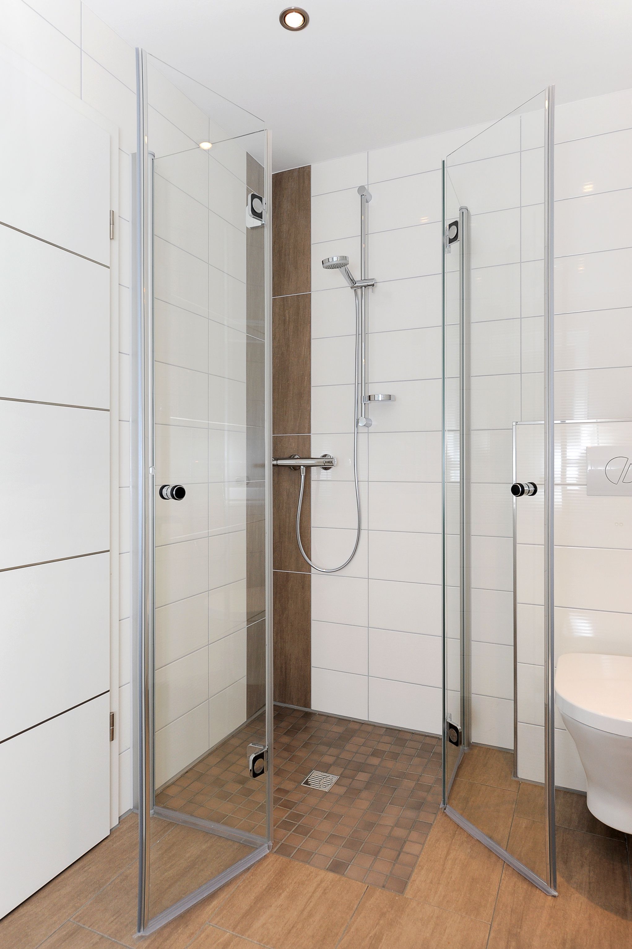 Badezimmer mit Dusche, Waschtisch und WC