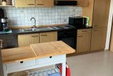 Die Ferienwohnung verfügt über einen gemütlichen Wohnbereich mit Küchenzeile und großem Esstisch. Der Küchenbereich ist voll ausgestattet. Zudem verfügt die Wohnung über zwei Schlafzimmer, eines mit gemütlichem Doppelbett, das andere mit zwei Einzelbetten. Ein Kinderbett ist zusätzlich vorhanden. Eine Terrasse gehört ebenfalls zum Angebot.