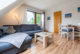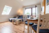 Gemütliche, einfache 2-Zimmer-Ferienwohnung Steuerbordkajüte im Haus Seewolf mit ca. 41 m² auf 1 Ebene (OG) für bis zu 3 Personen. In ruhiger Lage nahe der Einkaufsstraße im Ortsteil Dorf in St. Peter-Ording. Alle Geschäfte, Restaurants und Bäckereien sind fußläufig bequem erreichbar. Zwei Hunde sind nach Anmeldung herzlich willkommen.