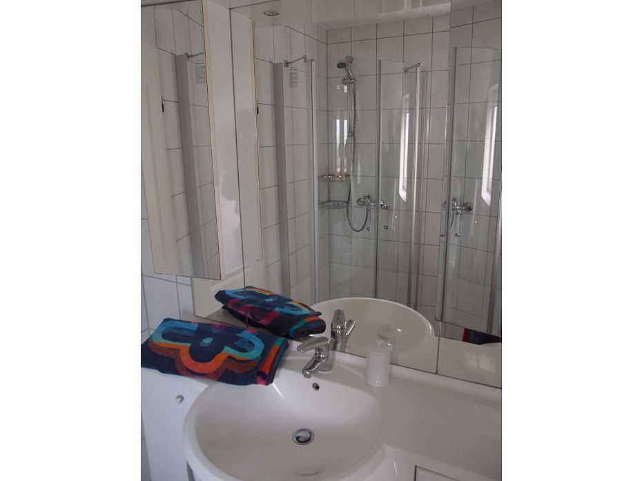 zweites Badezimmer mit Dusche, Waschtisch und WC