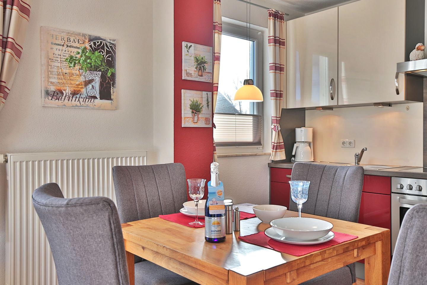 Die freundliche und moderne 2 Zimmer-Wohnung in Scharbeutz ist für 2 Personen geeignet. Sie liegt im 1. Stock mit schönem Ostbalkon. Die Wohnung verfügt über einen schönen Wohn-Essbereich, Flachbild-TV/SAT, W-LAN, Stereoanlage sowie über einen separaten Schlafraum mit gemütlichen Doppelbett 1,80 x 2,00 m. Die schöne Küche mit Geschirrspüler, Backofen mit Ceranfeld, Kühlschrank mit Gefrierfach und ein geräumiges Duschbad/WC mit Föhn lassen keine Wünsche offen.