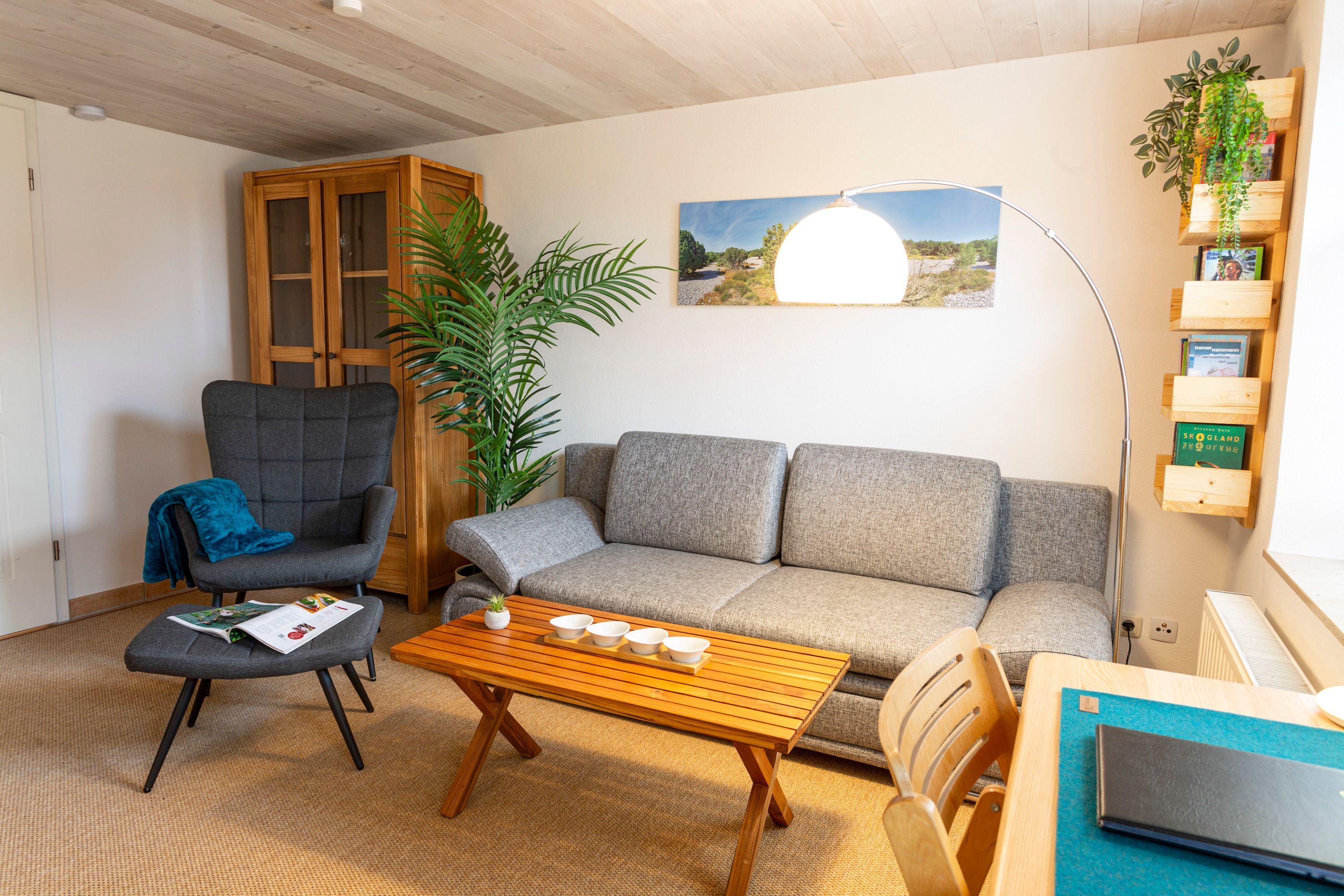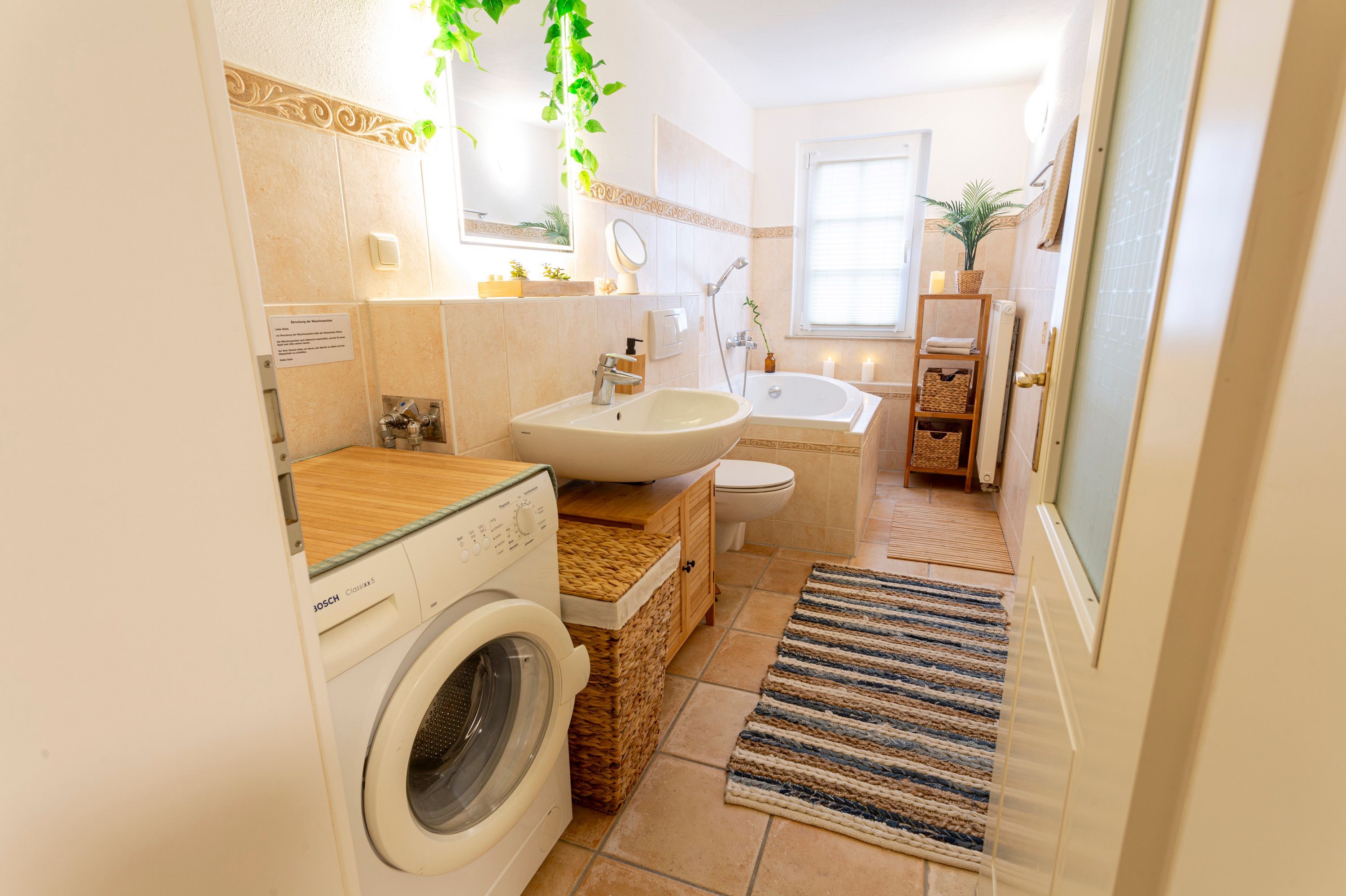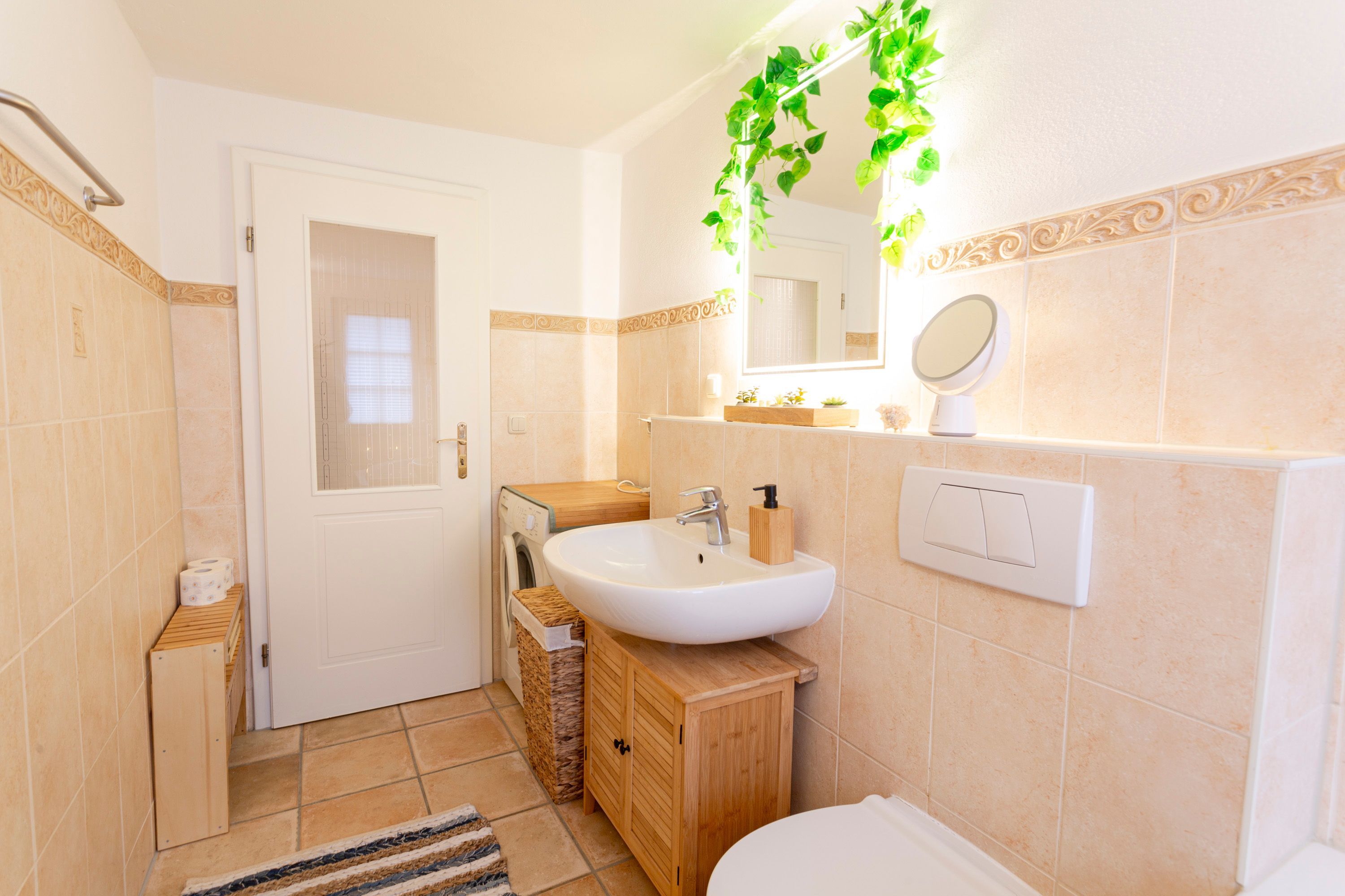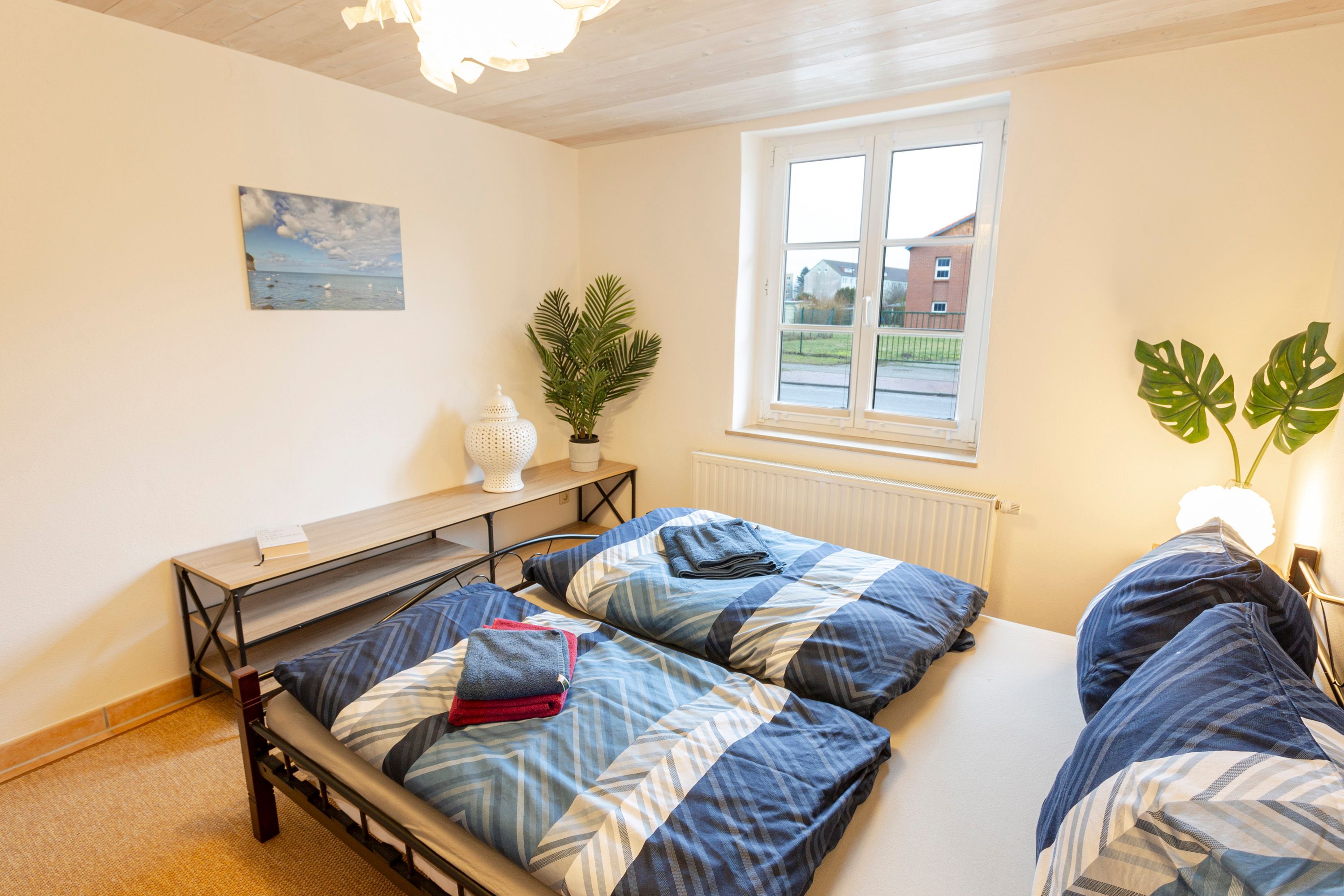 Die Ferienwohnung 3 im Haus Klein Kapelle befindet sich im Erdgeschoss des Hauses und bietet auf 57 m² genügend Platz für bis zu 4 Personen und einem Baby. Das Wohnzimmer verfügt neben einem Schlafsofa (150x210) und einem großen TV über einen modernen Kamin, der angenehme Wärme an kalten Abenden spendet. Das Schlafzimmer schließt sich an das Wohnzimmer und bietet ein Doppelbett (160x200) und ein Einzelbett (70x175) für erholsame Nächte. Die geräumige Küche lädt zum Kochen und gemeinsamen Genießen ein. Im Zentrum steht der große Esstisch und rund herum befindet sich die voll ausgestattete Küche im Landhausstil. Kochen sie ganz wie zu Hause, dafür stehen ihnen Herd, Backofen, Kühlschrank, Geschirrspüler und Mikrowelle zur Verfügung. Die kleinen Küchenhelfer des Alltags, wie Kaffeemaschine, Toaster, Wasserkocher und Milchaufschäumer befinden sich ebenfalls in der Küche. Das Bad ist mit einer Badewanne, WC, Waschbecken und einer Waschmaschine ausgestattet.
