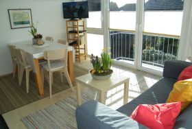 Eine große Fensterfront zum Garten, welche die Wohnung mit Licht durchflutet, ist das Kennzeichen dieser schönen Wohnung, in der Sie auch selber Ihre Mahlzeiten zubereiten können.