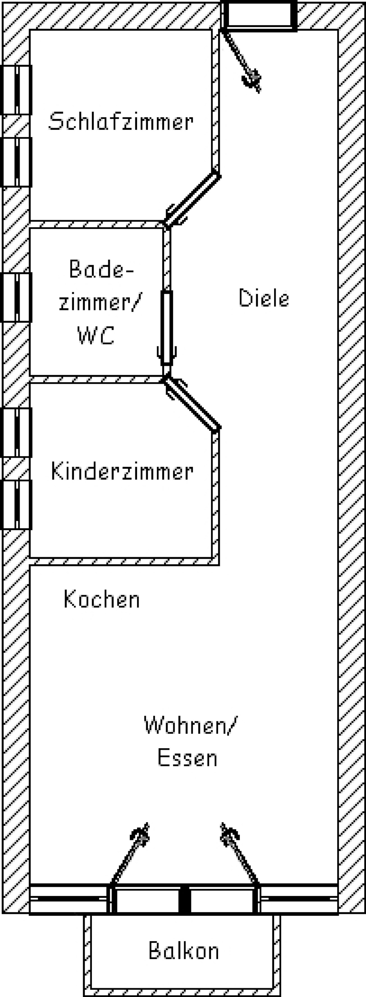 • einem kleinem Schlafzimmer mit zwei halbübereinander stehenden Betten.(90 cm x 200cm)