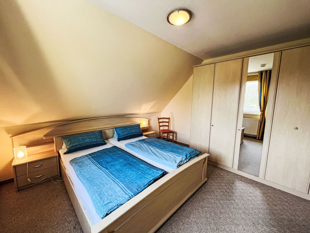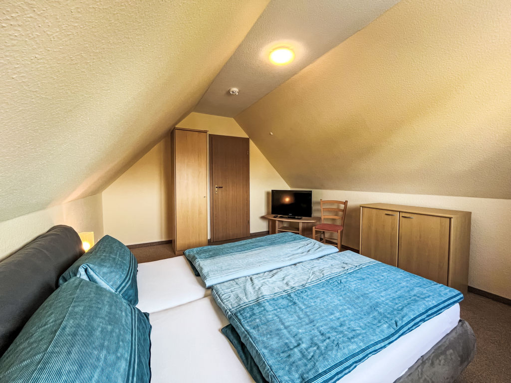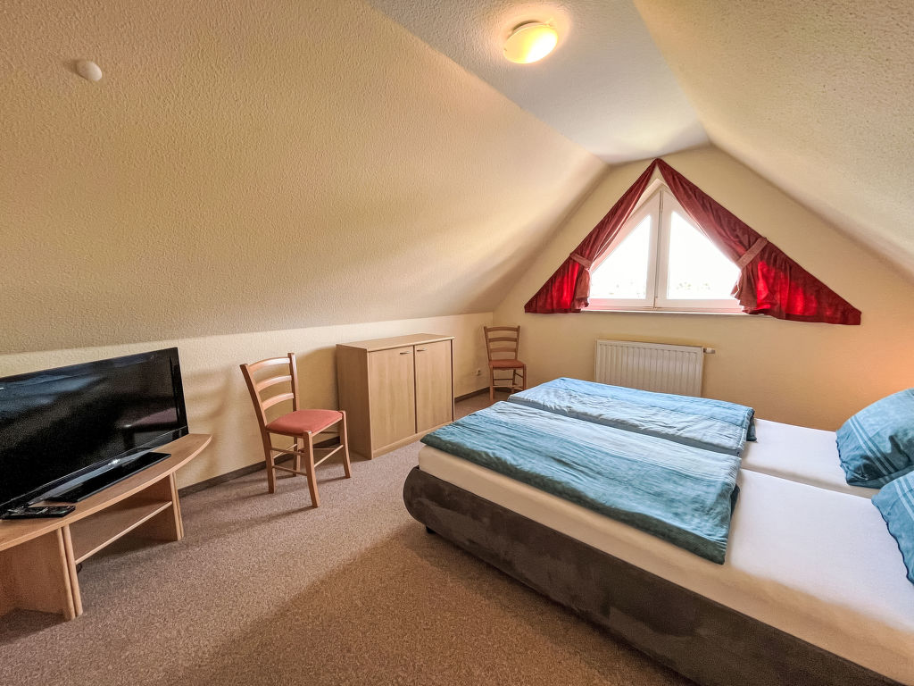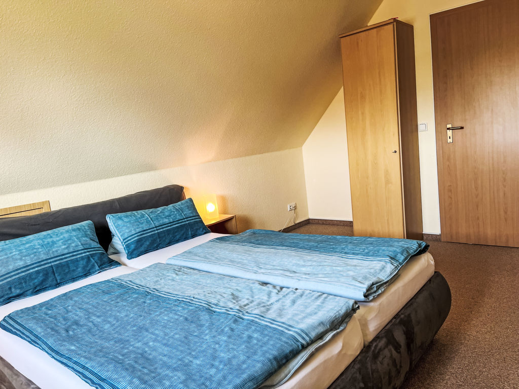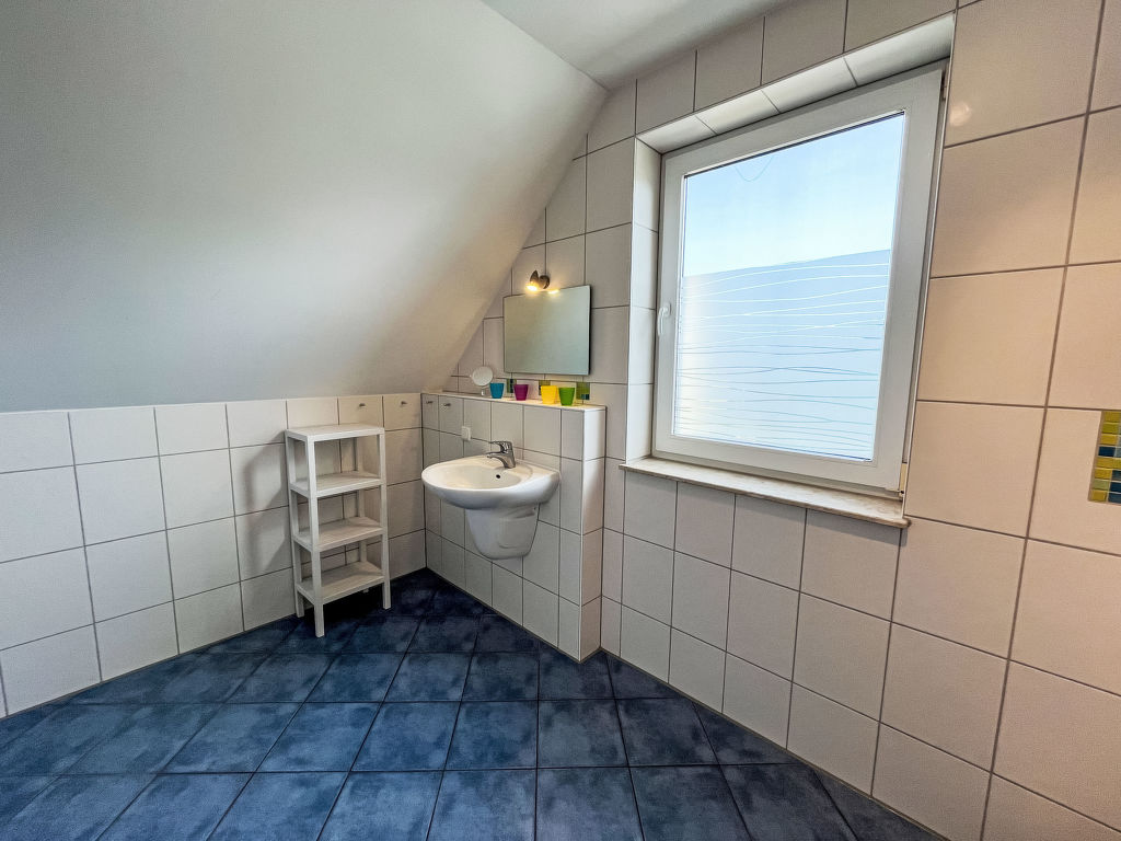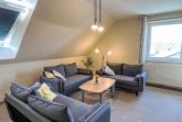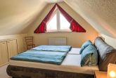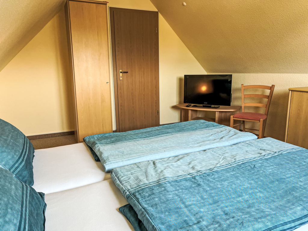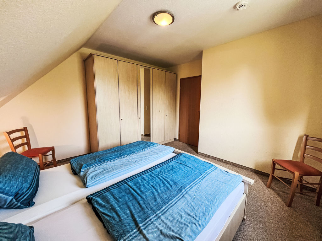 Sandbank, 4-Zimmer-Wohnung 97 m2 auf 2 Stockwerken im 1. Stock. Gemütlich eingerichtet: abgeschrägtes Wohnzimmer mit Kabel-TV (Flachbildschirm), Radio. 1 abgeschrägtes Zimmer mit 1 Doppelbett. Offene Küche (Backofen, Geschirrspüler, 4 Glaskeramikplatten, Toaster, Wasserkocher, Mikrowelle, elektrische Kaffeemaschine) mit Esstisch. 2 Duschen/WC. Dachgeschoss: (steile Treppe) 1 abgeschrägtes Zimmer mit 1 Doppelbett und Kabel-TV (Flachbildschirm). 1 abgeschrägtes Zimmer mit 2 Betten. Heizung. Gartensitzplatz. Terrassenmöbel, Gartengrill (mobil). Zur Verfügung: Kinderhochstuhl, Babybett. Parkplatz (2 Autos) beim Haus. Bitte beachten: Nichtraucher-Unterkunft. Rauchmelder.