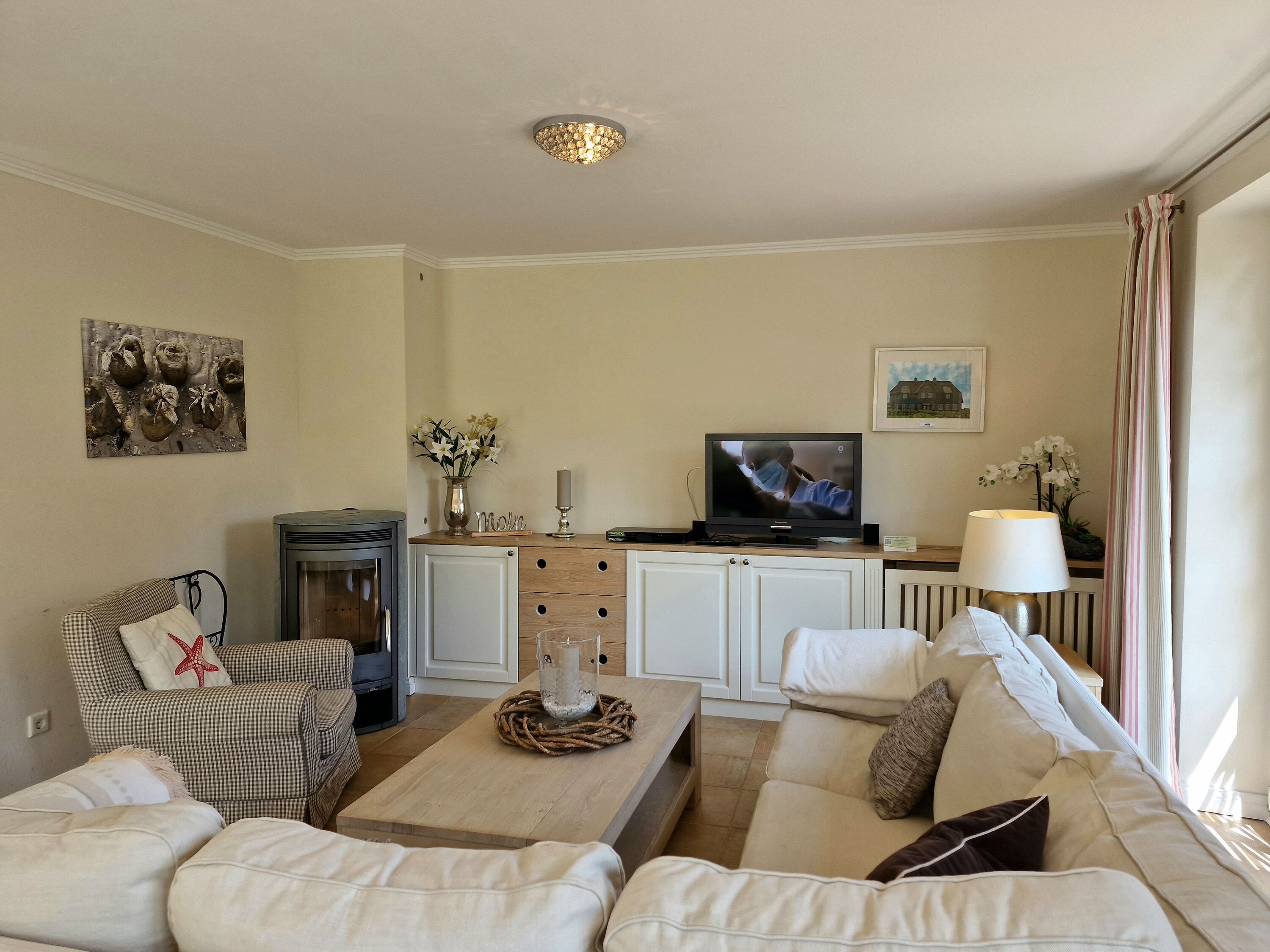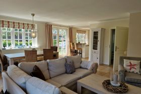In dieser sehr schönen und hochwertig eingerichteten Doppelhaushälfte werden Sie sich von Anfang an wohlfühlen. Verbringen Sie gemütliche Winterabende vor dem Kaminofen oder gönnen Sie sich einen Saunabesuch nach einem ausgiebigen Strandspaziergang. Im Garten steht außerdem ein Grillkamin zur Verfügung. Die Fußgängerzone mit Restaurants und Geschäften ist nur wenige Gehminuten entfernt, zum Strand sind es ca. 15 Gehminuten. Auch Ihr Hund (max. 1) ist hier willkommen.