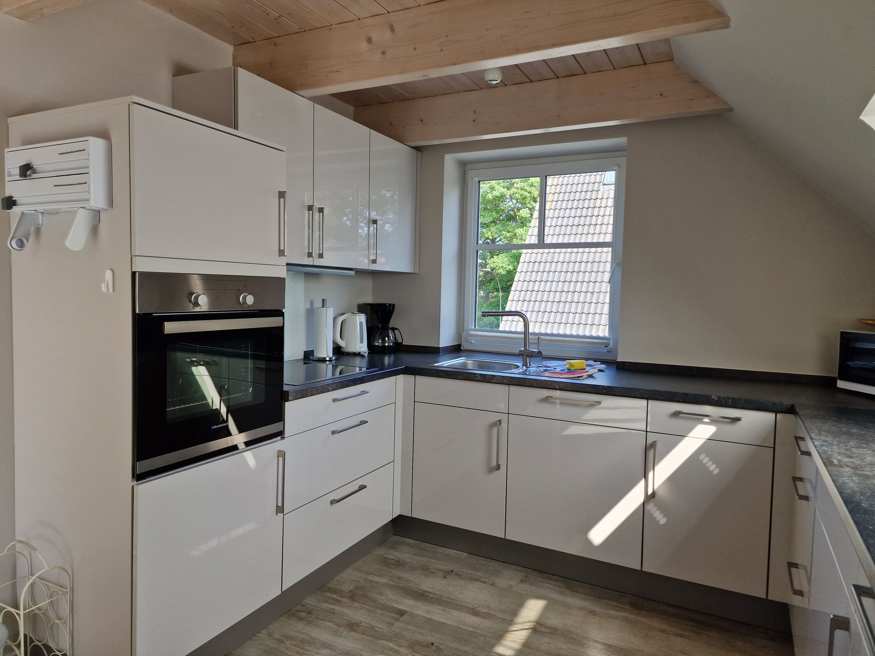 Die Ausstattung umfasst einen TV, WLAN (kostenfrei), eine Kaffeemaschine (Filter), eine Mikrowelle, einen Geschirrspüler und eine Waschmaschine. Rauchen ist in der Wohnung nicht gestattet und auch Hunde sind nicht erlaubt. Der Balkon lädt zum Entspannen ein und die offene Küche bietet alle nötigen Annehmlichkeiten, inklusive einer Senseo Kaffeemaschine. Für Fahrräder gibt es eine Unterstellmöglichkeit.