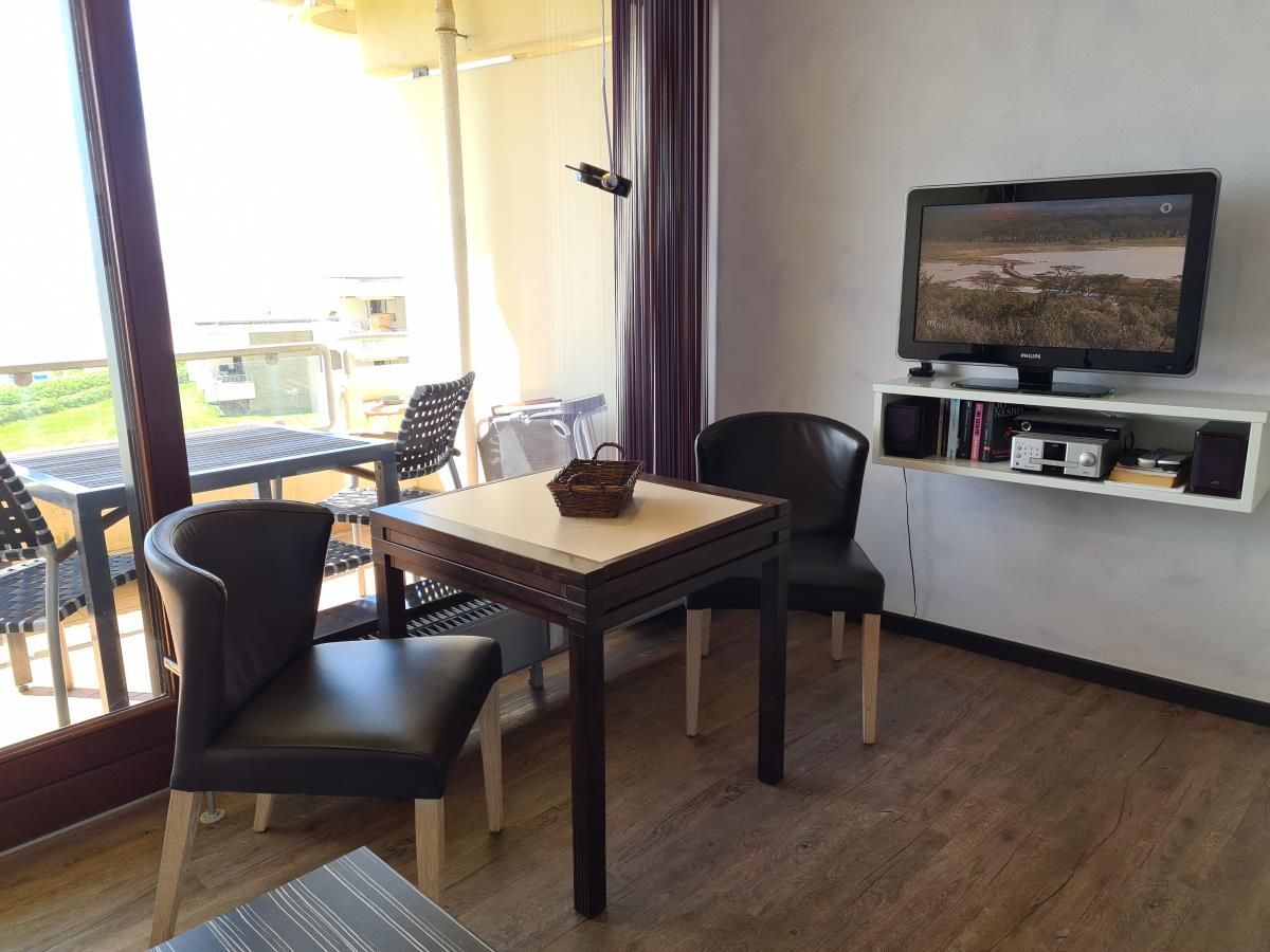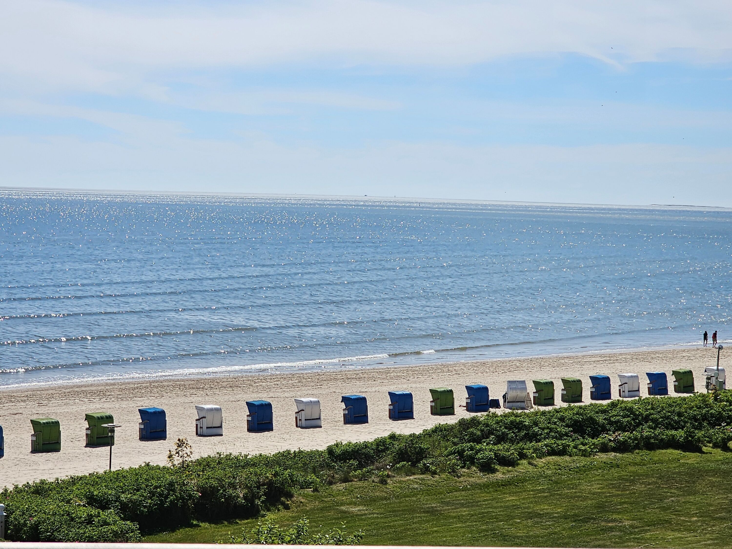 Die Ausstattung umfasst alles, was Sie für einen entspannten Aufenthalt benötigen. Genießen Sie den Meerblick von der Terrasse oder entspannen Sie auf dem Balkon und lassen Sie den Blick über die Nordsee schweifen. Für eine Abkühlung steht Ihnen ein Schwimmbad im Appartementhaus zur Verfügung und in der gemeinschaftlichen Sauna können Sie sich nach einem erlebnisreichen Tag entspannen. Fahrräder können Sie sicher in der Abstellmöglichkeit unterbringen und die Panoramablick von der Wohnung aus wird Sie begeistern.