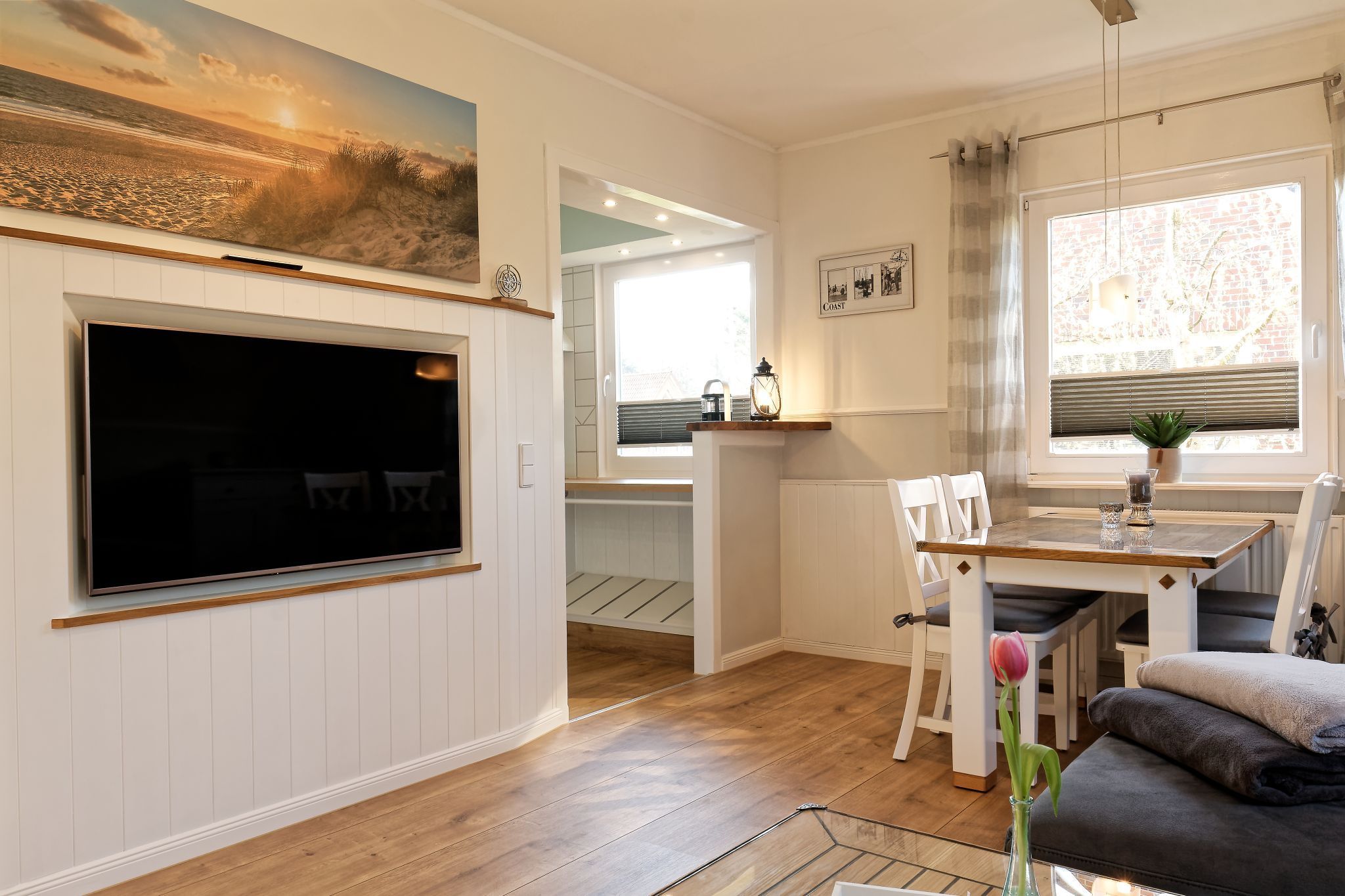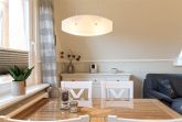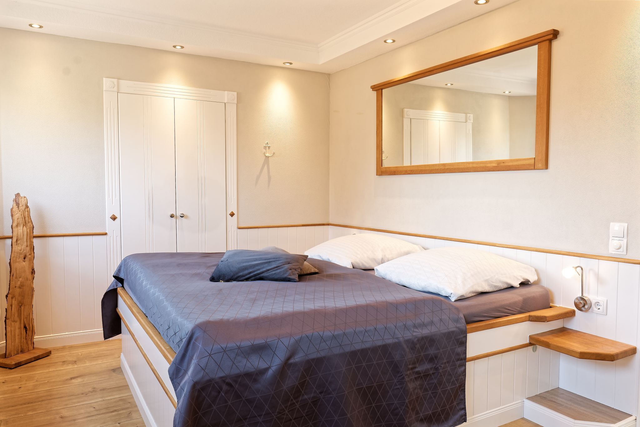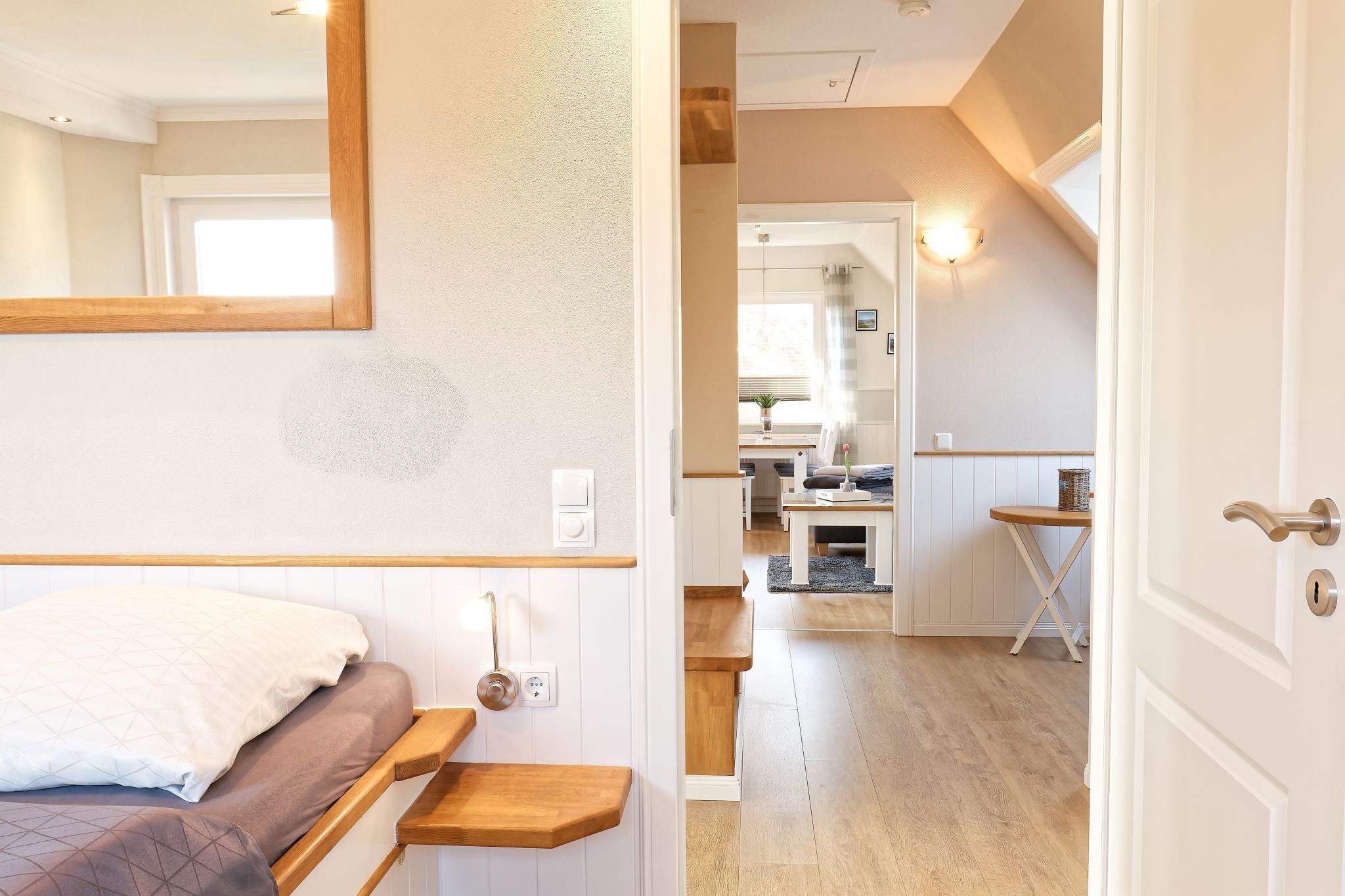 Unsere gemütliche Ferienwohnung zeichnet sich aus durch die liebevolle Einrichtung mit Einbaumöbeln und die hellen lichtdurchfluteten Räume, die sich auch durch die eingebauten Plissees und Jalousien abdunkeln lassen.