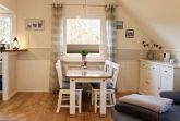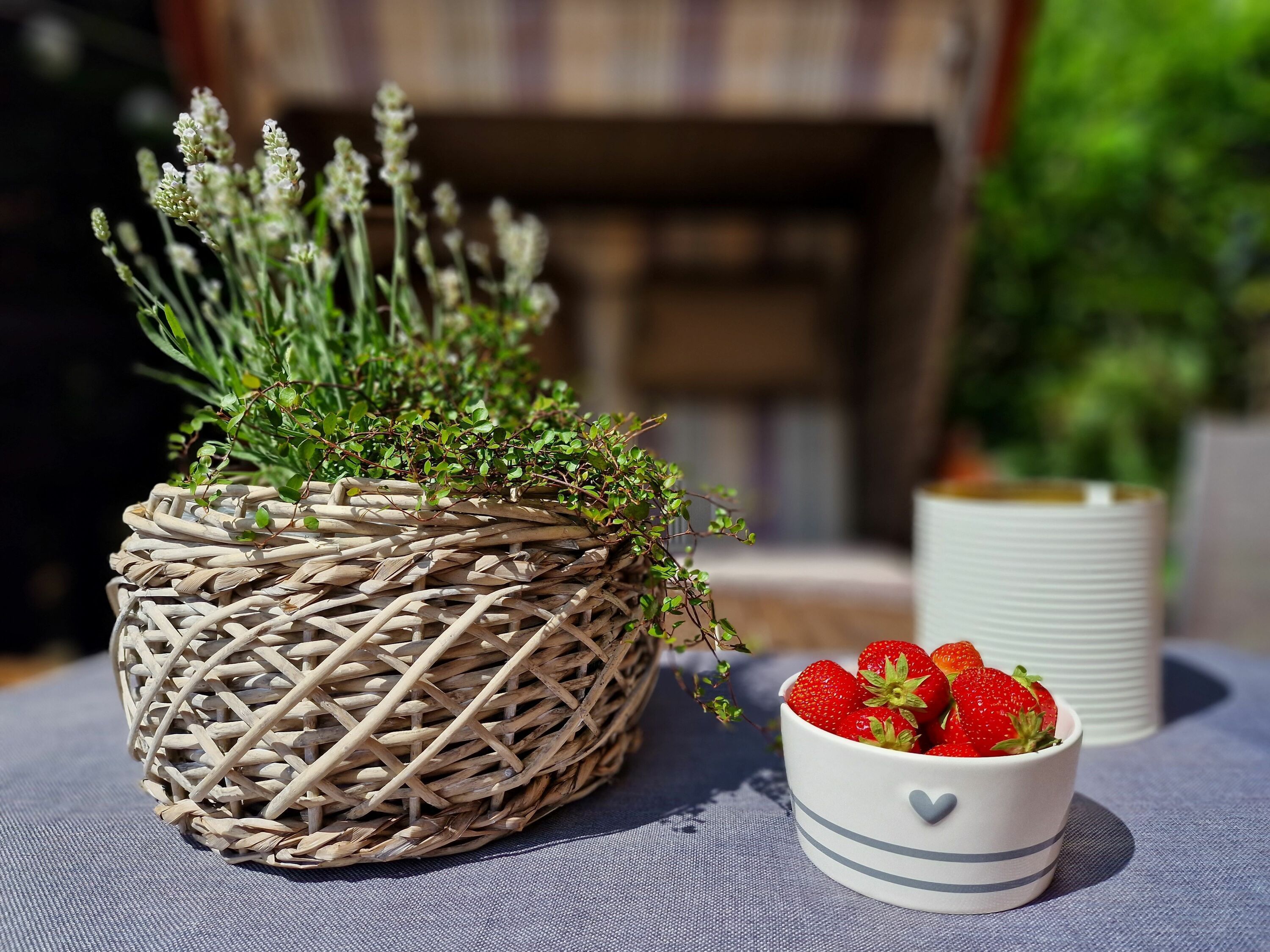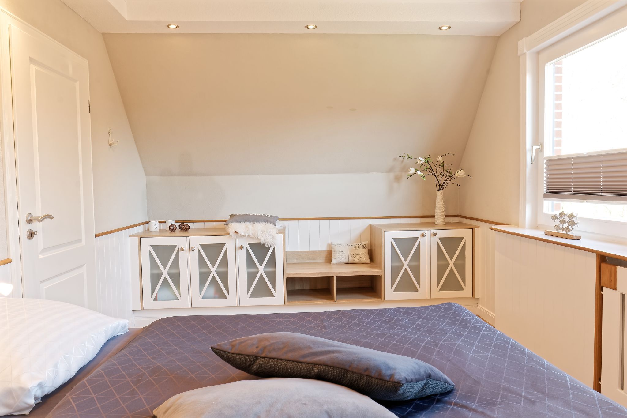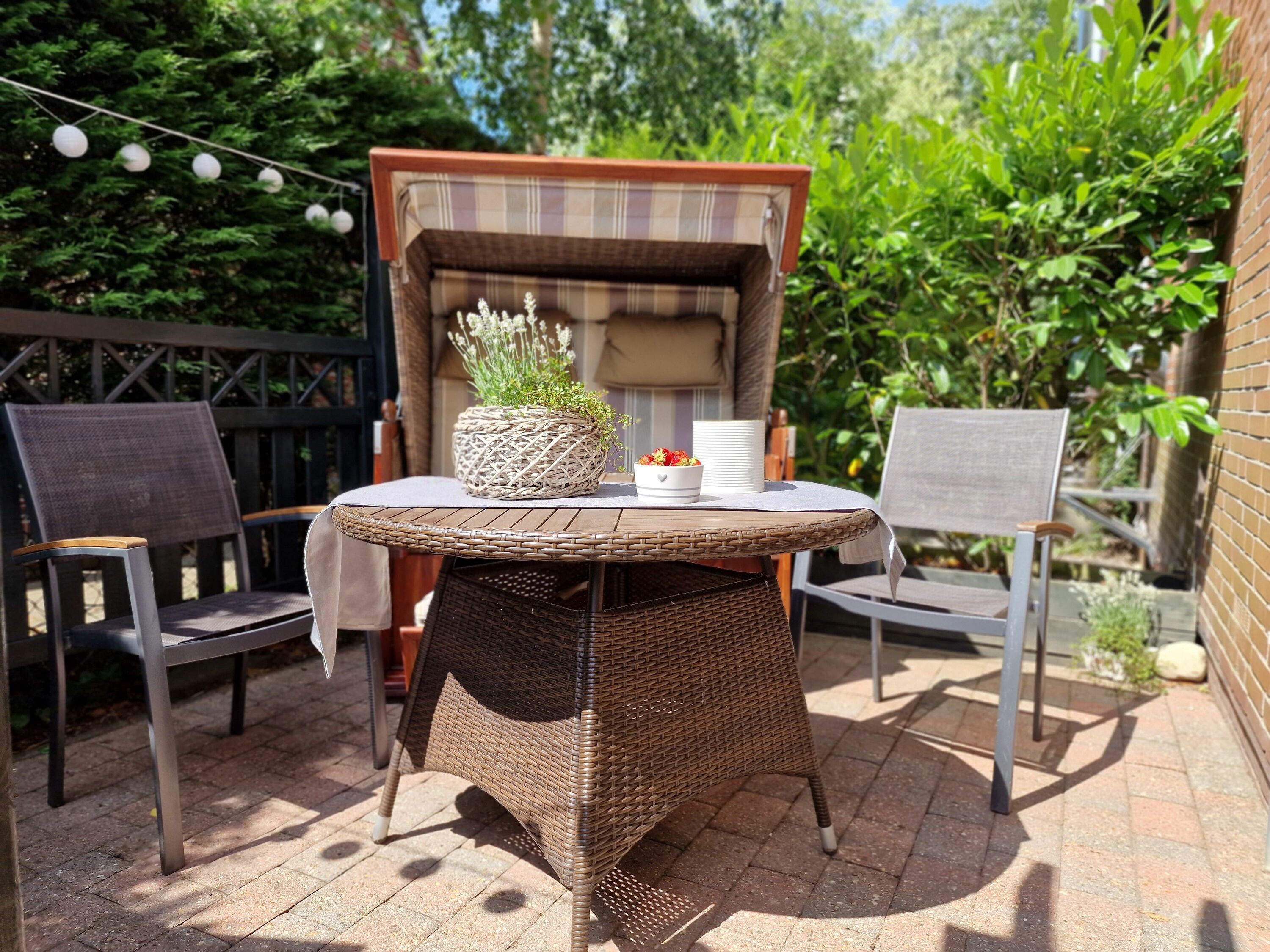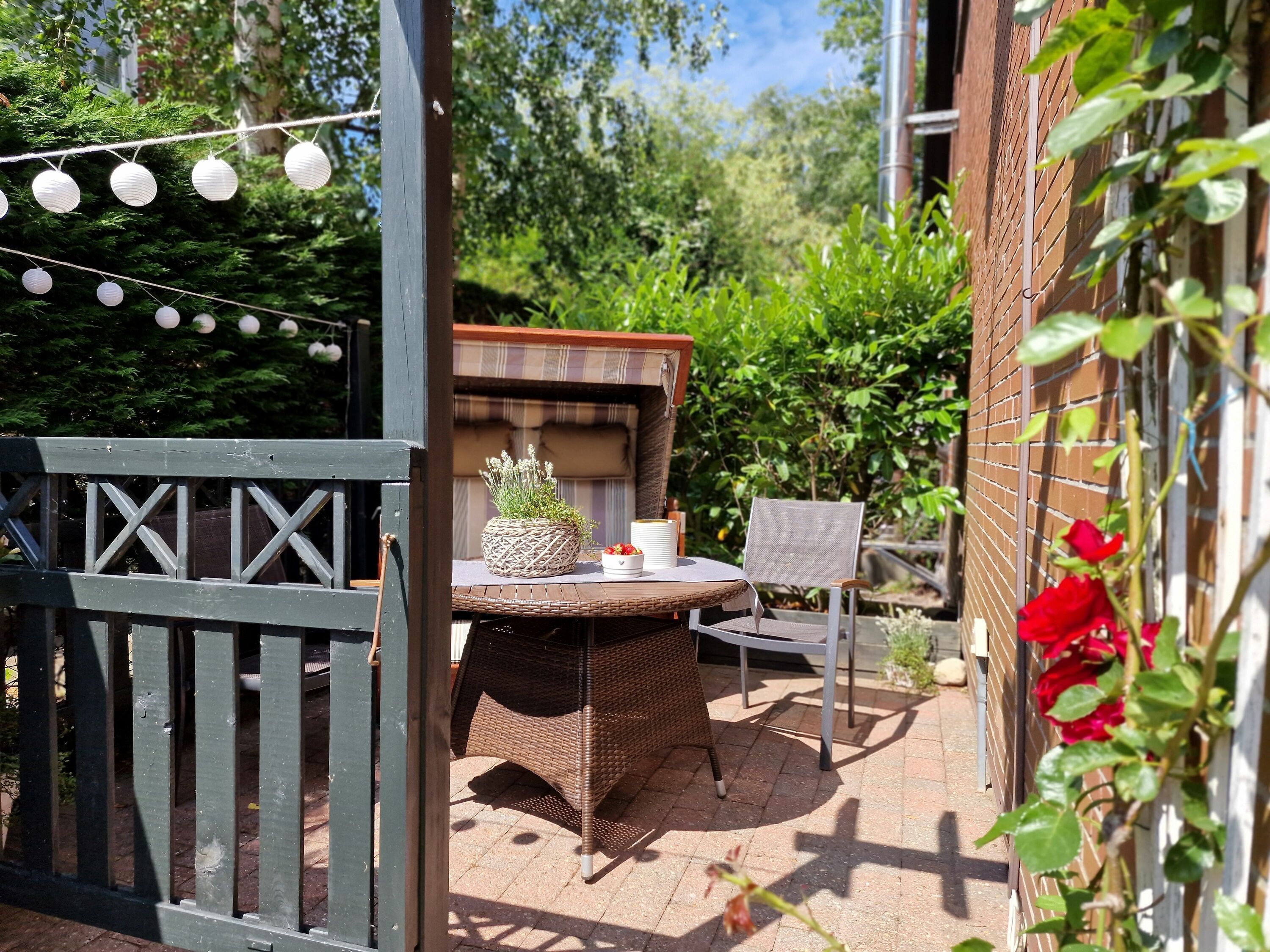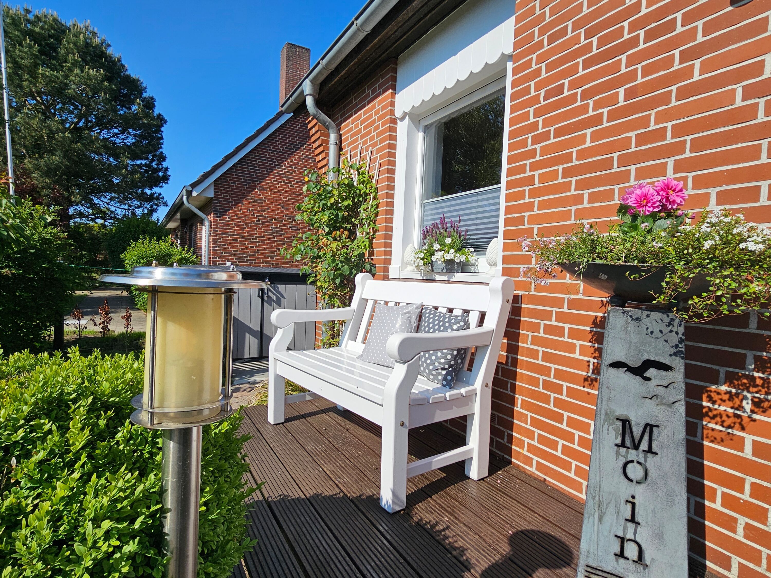 Genießen Sie Ihren Urlaub in unserer gemütlichen, liebevoll eingerichteten Ferienwohnung. Entspannen fängt beim Wohlfühlen an. Mit gemütlichen Dachschrägen, großzügigen, behaglichen Räumen befindet sich die Wohnung im 1. Obergeschoß. Neben dem Haus befindet sich eine lauschige Terrasse mit Sitzmöglichkeiten und Strandkorb sowie einen abschließbaren Fahrradabstellraum.