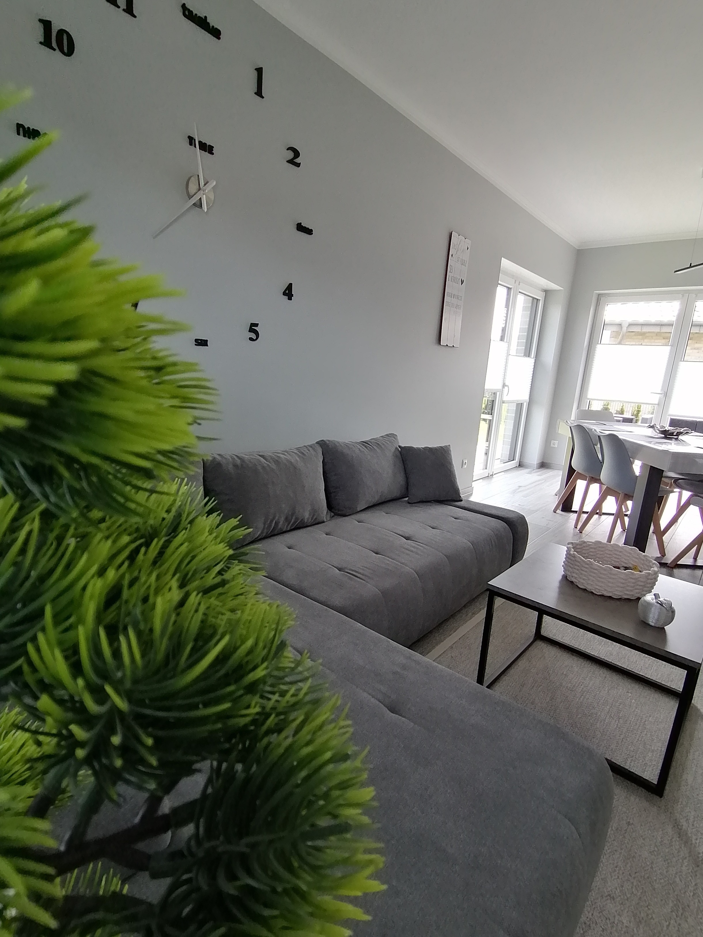 -Sofa mit Schlaffunktion im Wohnzimmer.