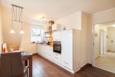 Die Fewo 'Albatros' , 52qm, mit einem Balkon liegt im Obergeschoss und bietet einen tollen Blick auf die Ostsee. Sie verfügt über ein in weiß gehaltenes Schlafzimmer mit einem Doppelbett mit einer Liegefläche von 180 x 200 cm, Die offene Küche ist mit allem Komfort wie Geschirrspüler, Kühlschrank mit Gefrierfach, Mikrowelle, Ceranfeld, erhöhter Backofen, Granitspüle, Kaffeemaschine usw. ausgestattet. Der Esstisch am Fenster bietet mit den bequemen Schwingstühlen Platz für 2 Personen. Der gemütliche Wohnraum mit Kamin ist in einem behaglichen maritimen Stil mit einem komfortablen Sofa eingerichtet. Ein großer LCD-Fernseher, Blu-Ray-Player, sowie Spiele, Bücher und Umgebungskarten sind vorhanden. Das schöne Badezimmer mit Tageslichtfenster ist in creme/braun gehalten, mit einem großen Waschtisch, Dusche 0,90 x 1,00 m, Fußbodenheizung und Radio ausgestattet. Der geräumige Flur und ein separater Abstellraum bieten viel Platz.