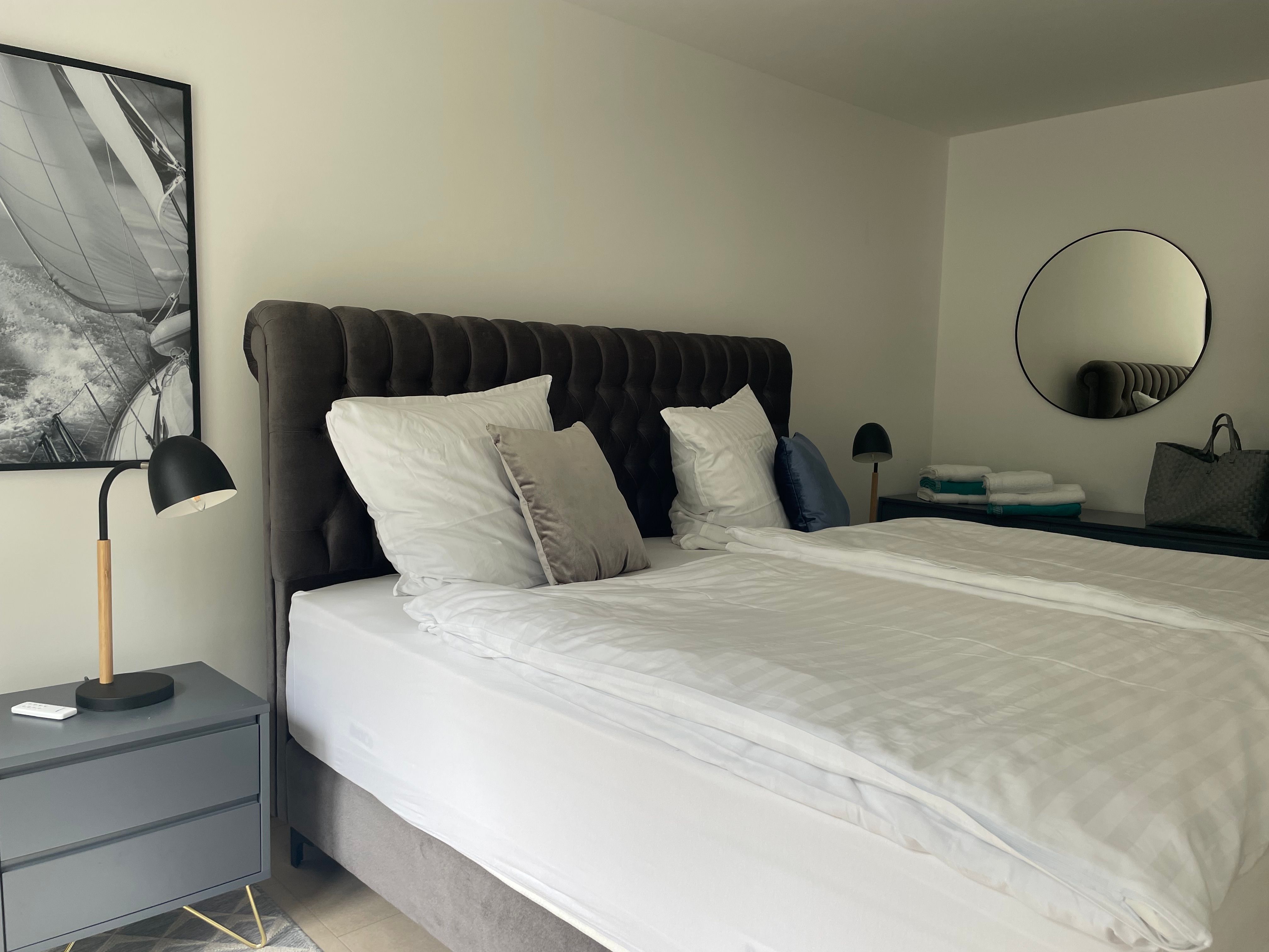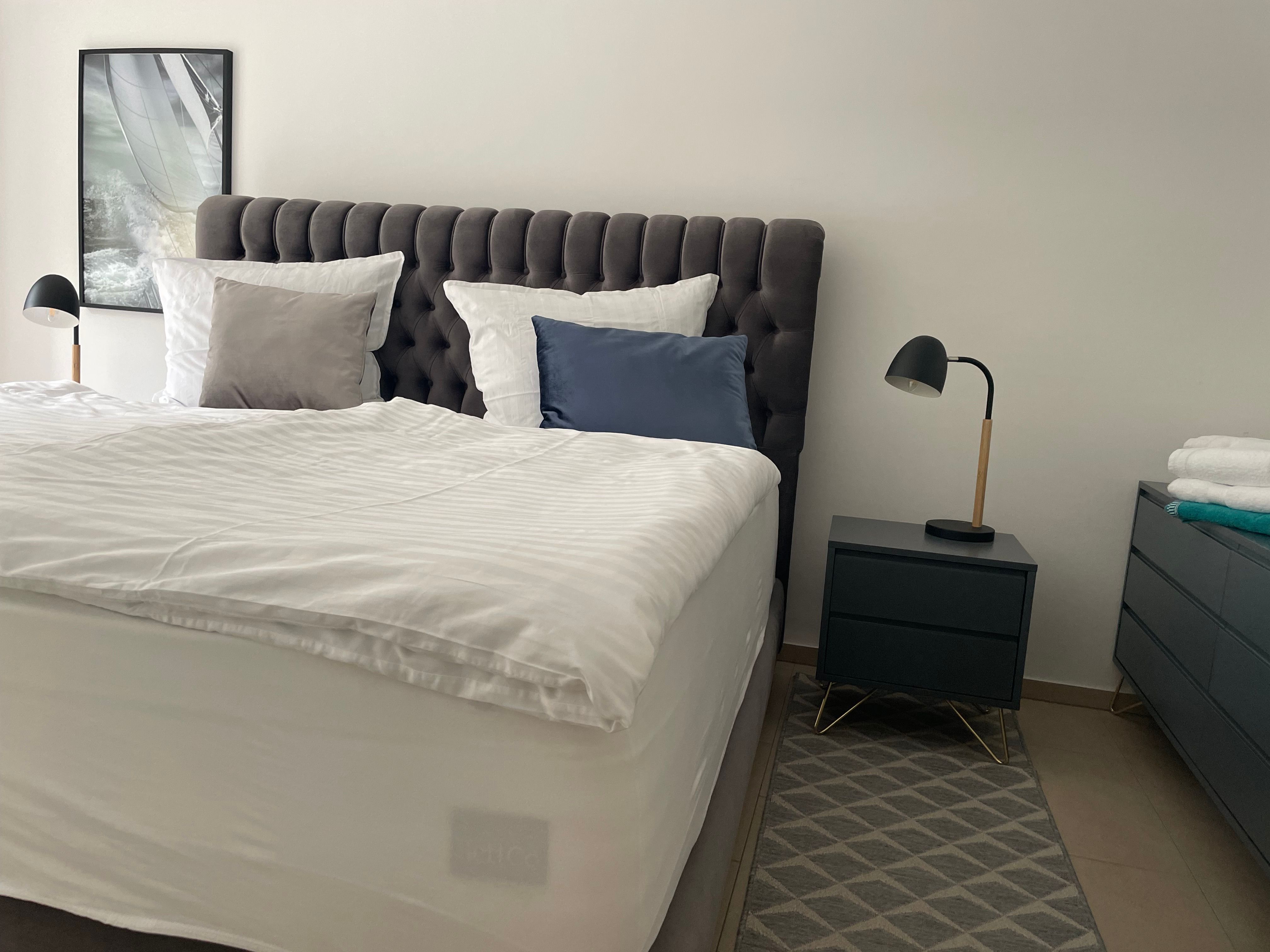 Schlafraum mit einem Boxspringbett der Marke BettCo 2,00 x 2,20 m