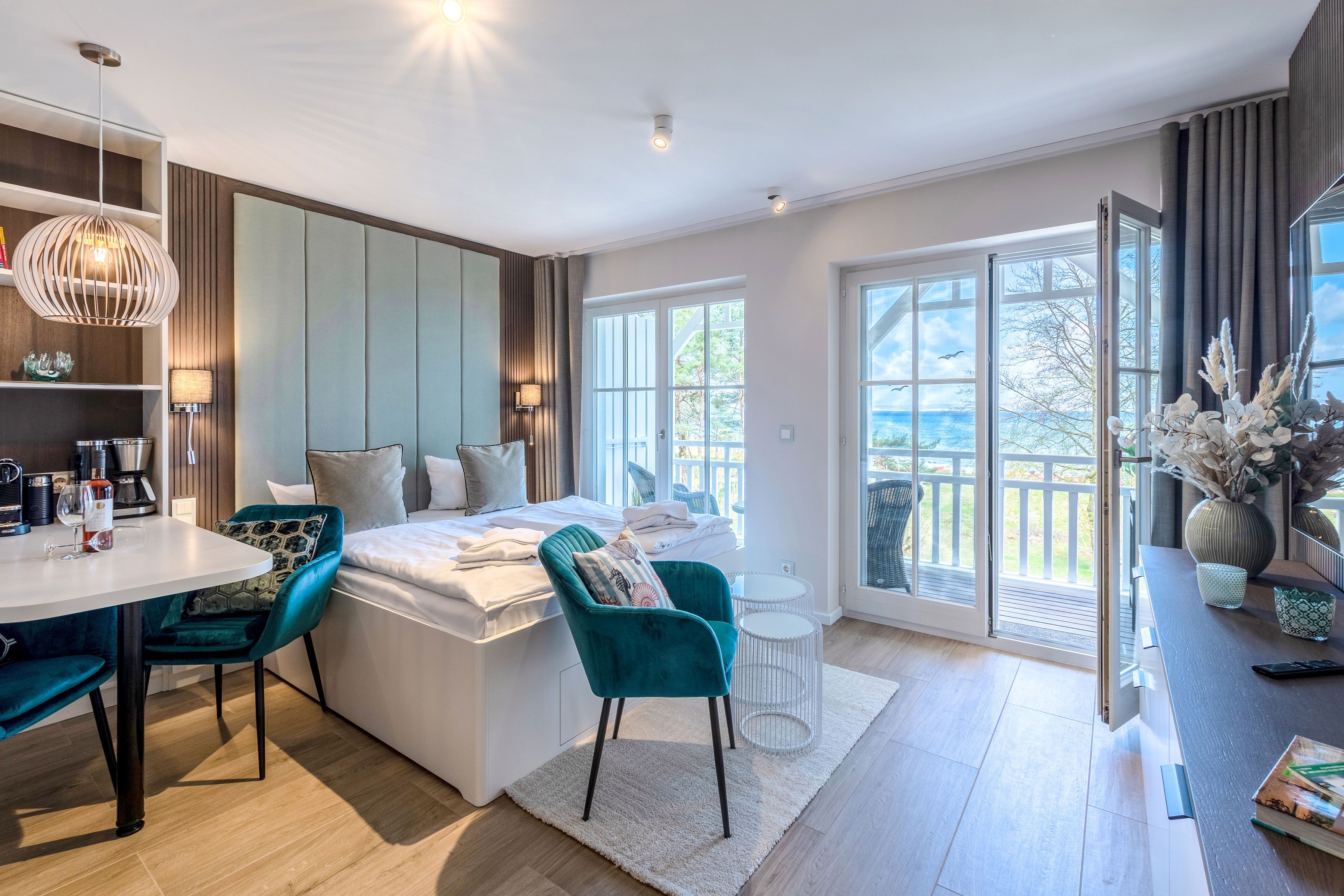 Sie erwarten stilvoll eingerichtete 1 - 3 Zimmer-Ferien-Appartements, mit Balkon mit frontalem Meerblick oder mit Südbalkon mit Blick in den Granitzer Wald, Pkw-Stellplatz am Haus, Waschmaschine und Trockner gegen Gebühr sowie ein Strandkorb in der Sommersaison. In allen Appartements steht Ihnen WLAN zur Verfügung. Ein Fahrstuhl ist im Seeschloss vorhanden, womit Sie ganz komfortabel die Appartements erreichen.