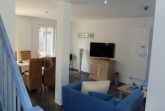 Das Haus erstreckt sich über zwei Etagen und verfügt über zwei Schlafzimmer, zwei Bäder und einen Wohnraum mit offener Küche und Essplatz.