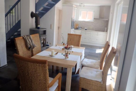 Eine Terrasse, auf welcher Sie Sitzmöbel und einen Strandkorb vorfinden, lädt Sie zum Entspannen oder Grillen ein (Grill ist vorhanden - muss durch den Gast gereinigt werden). Darüber hinaus stehen Ihnen eine Waschmaschine und zwei Parkplätze zur Verfügung. Das Ferienhaus ist nicht komplett eingezäunt.