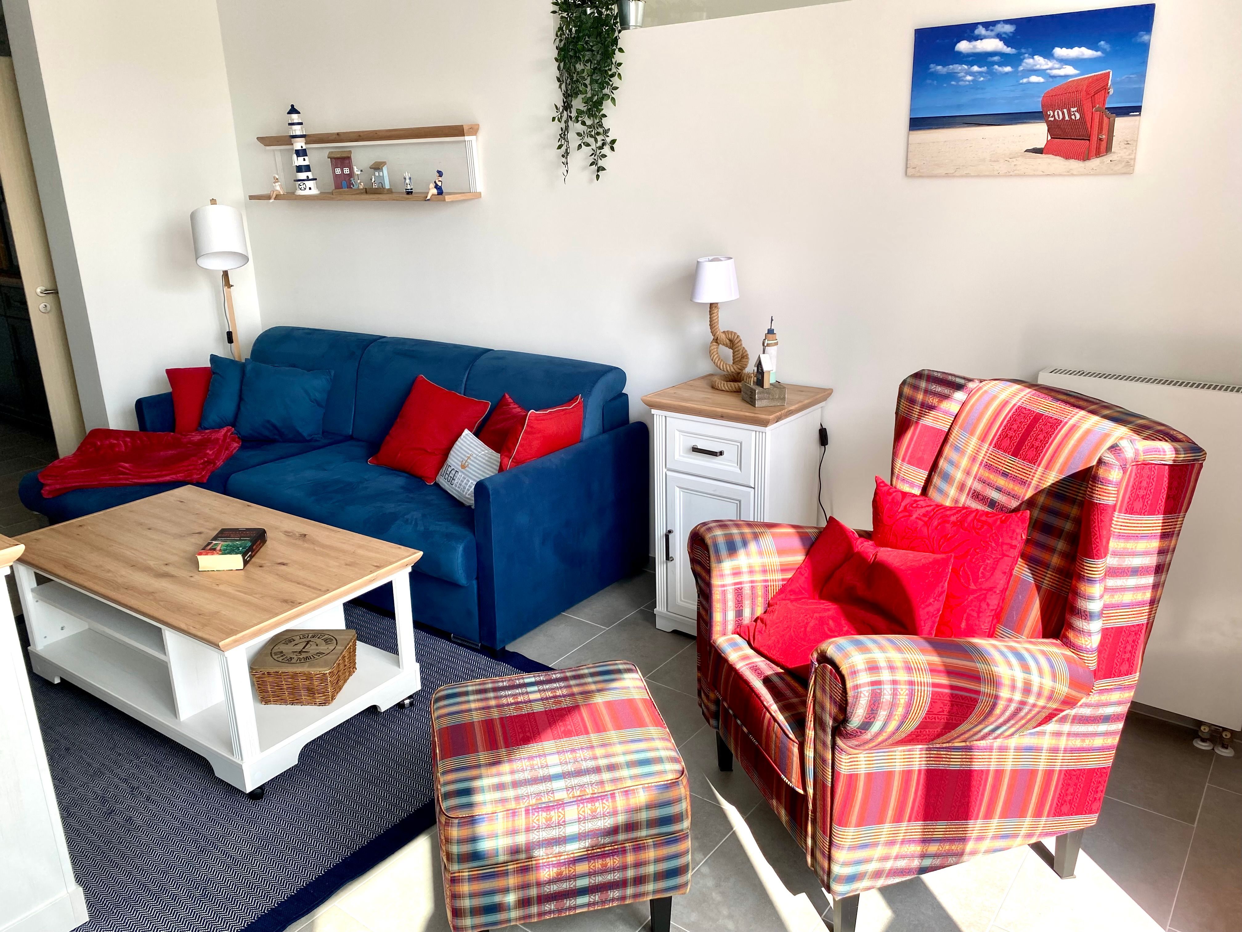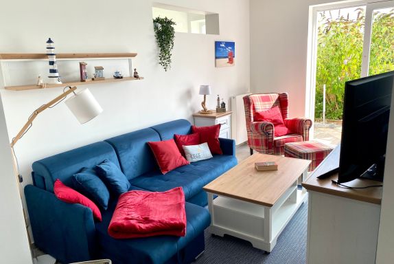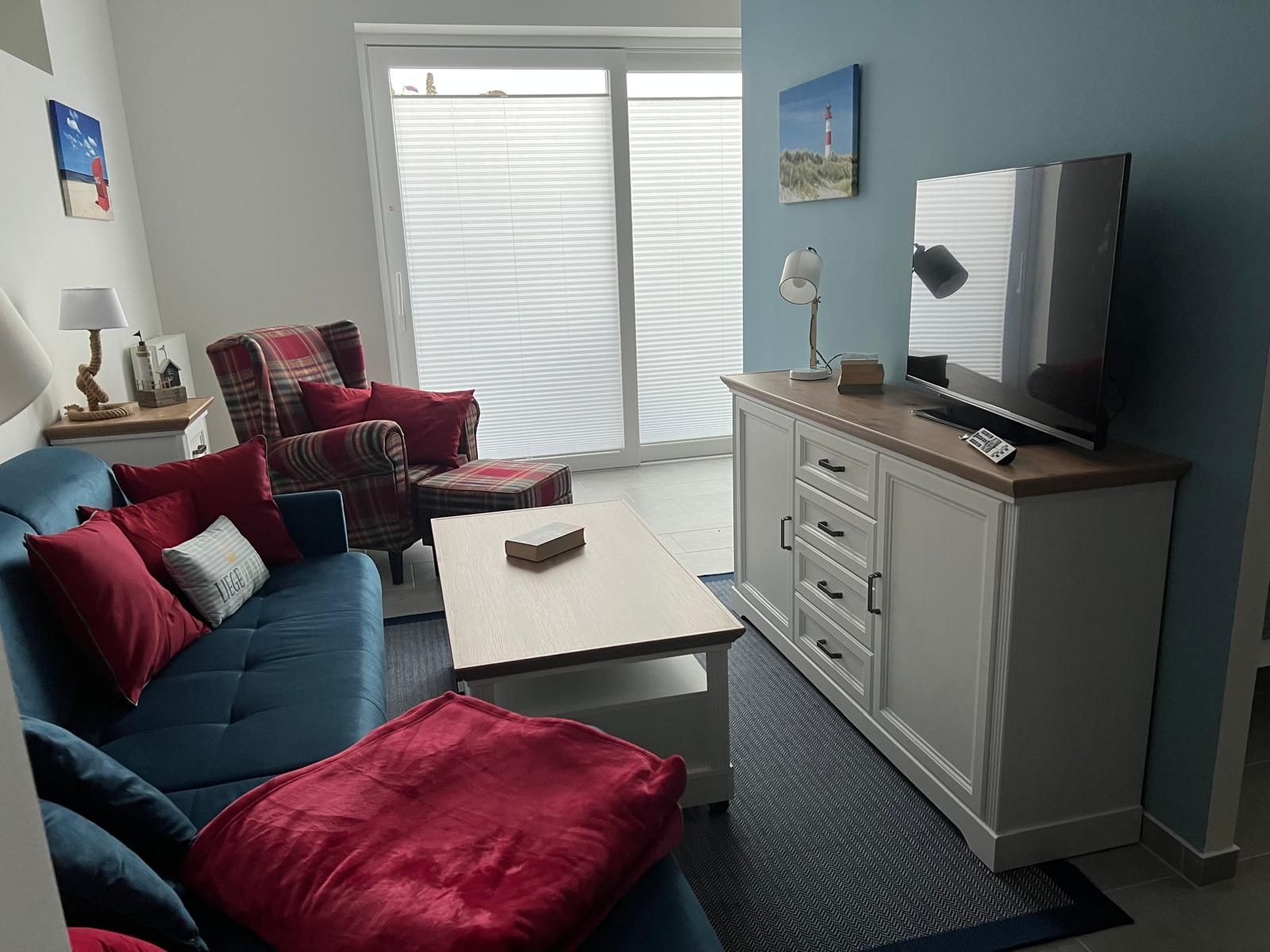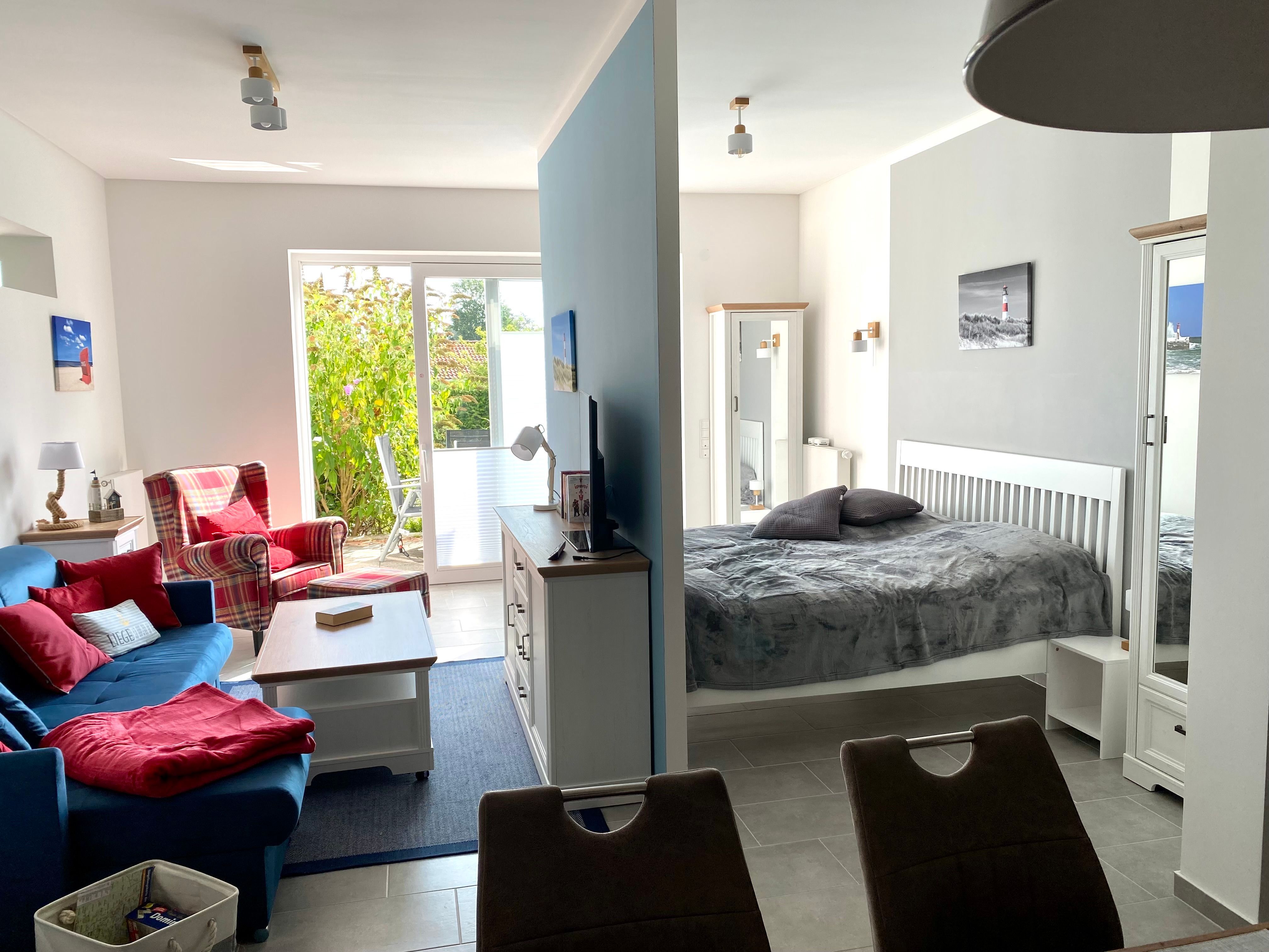 Die 1-Zimmer-Ferienwohnung mit ca. 53 m² Wohnfläche ist aufgeteilt in: komb. Wohn-/Schlafraum mit Schlafcouch (140cm x 200cm) und Doppelbett (180cm x 200cm/getrennte Matratzen), Kinderbett und Hochstuhl vorhanden; offene Einbauküche mit Essplatz; Bad mit Wanne/Dusche/WC; möblierte Terrasse; kostenfreies WLAN; PKW-Stellplatz; abschließbarer Fahrradraum; Nichtraucher!; Haustier auf Anfrage. Ohne Bett- und Handtuchwäsche.