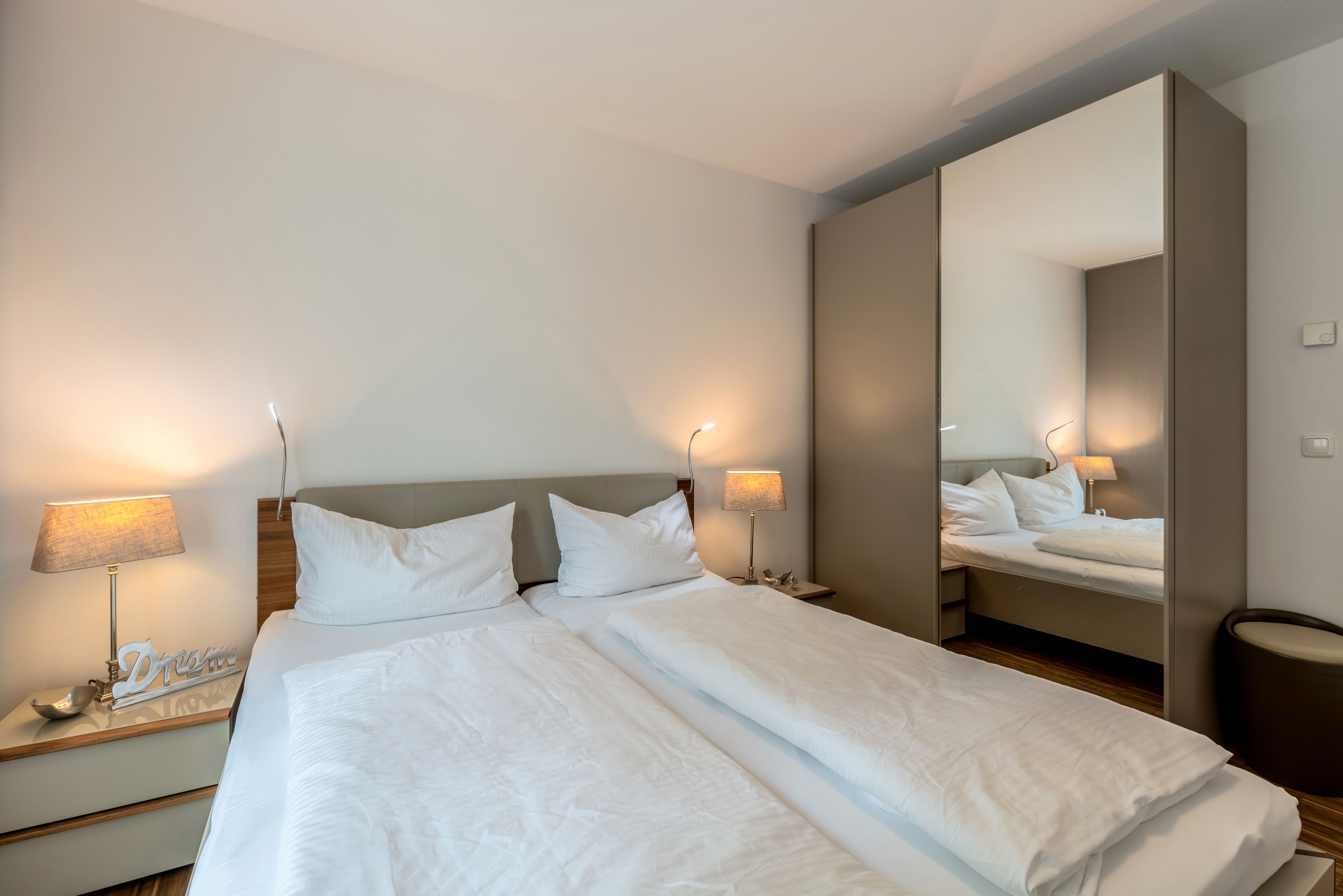 In den beiden Schlafzimmern erwarten Sie jeweils ein komfortables Doppelbett und ein geräumiger Kleiderschrank, sodass Sie sich auch im Urlaub wie zu Hause fühlen können.