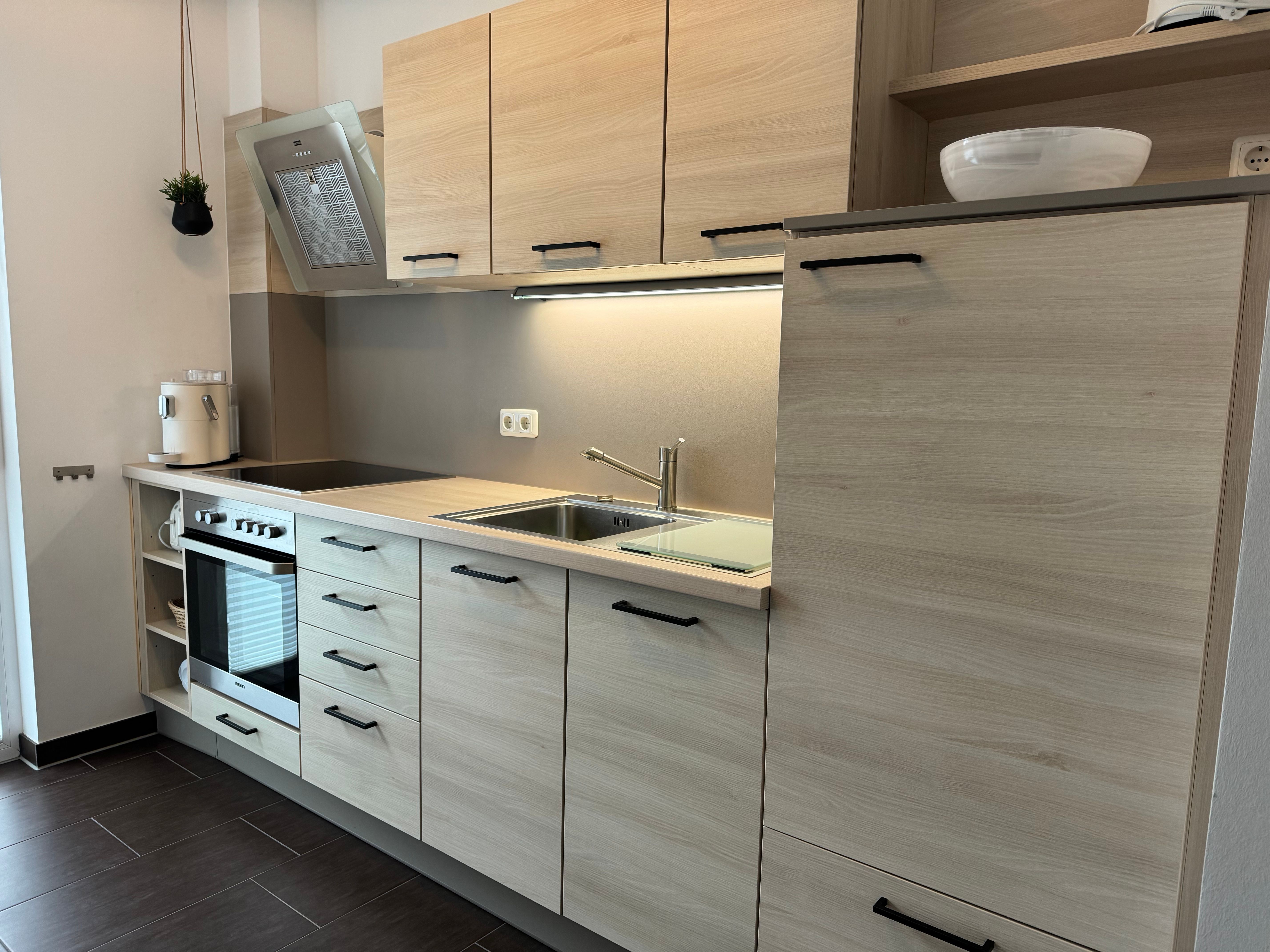 Die offene, komplett ausgestattete Küche bietet mit Ceran-Back-Herd, Geschirrspüler, Kaffeemaschine, Toaster, Wasserkocher und weiterem Küchenzubehör alles, was Sie für die Zubereitung köstlicher Mahlzeiten benötigen.