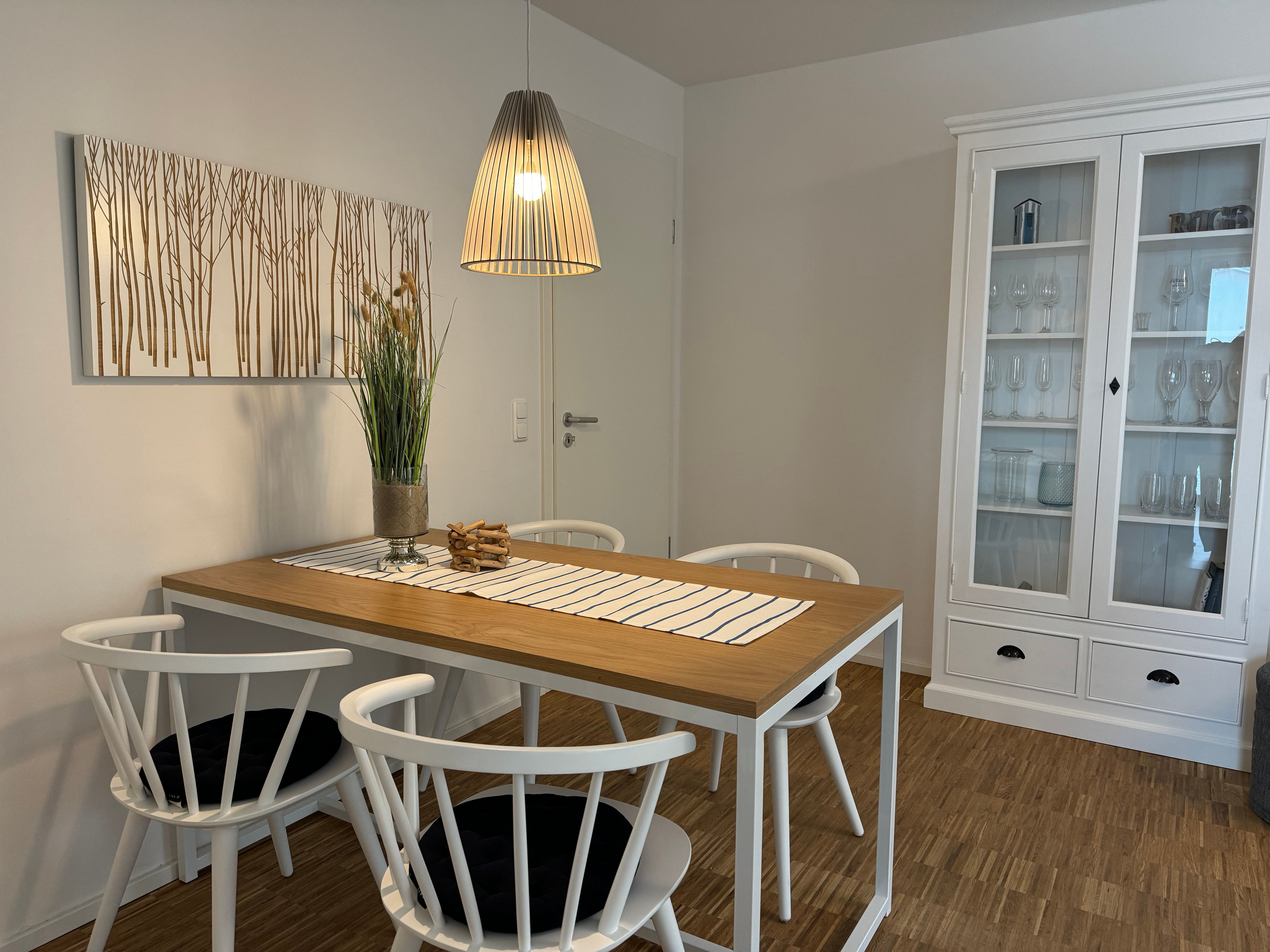 Sie erwarten helle und modern eingerichtete 2 - 3 Zimmer-Ferien-Appartements, mit voll ausgestatteten Küchen mit Markengeräten, luxuriösem Interieur sowie einem großem überdachten Balkon, Pkw-Stellplatz am Haus, Waschmaschine und Trockner.