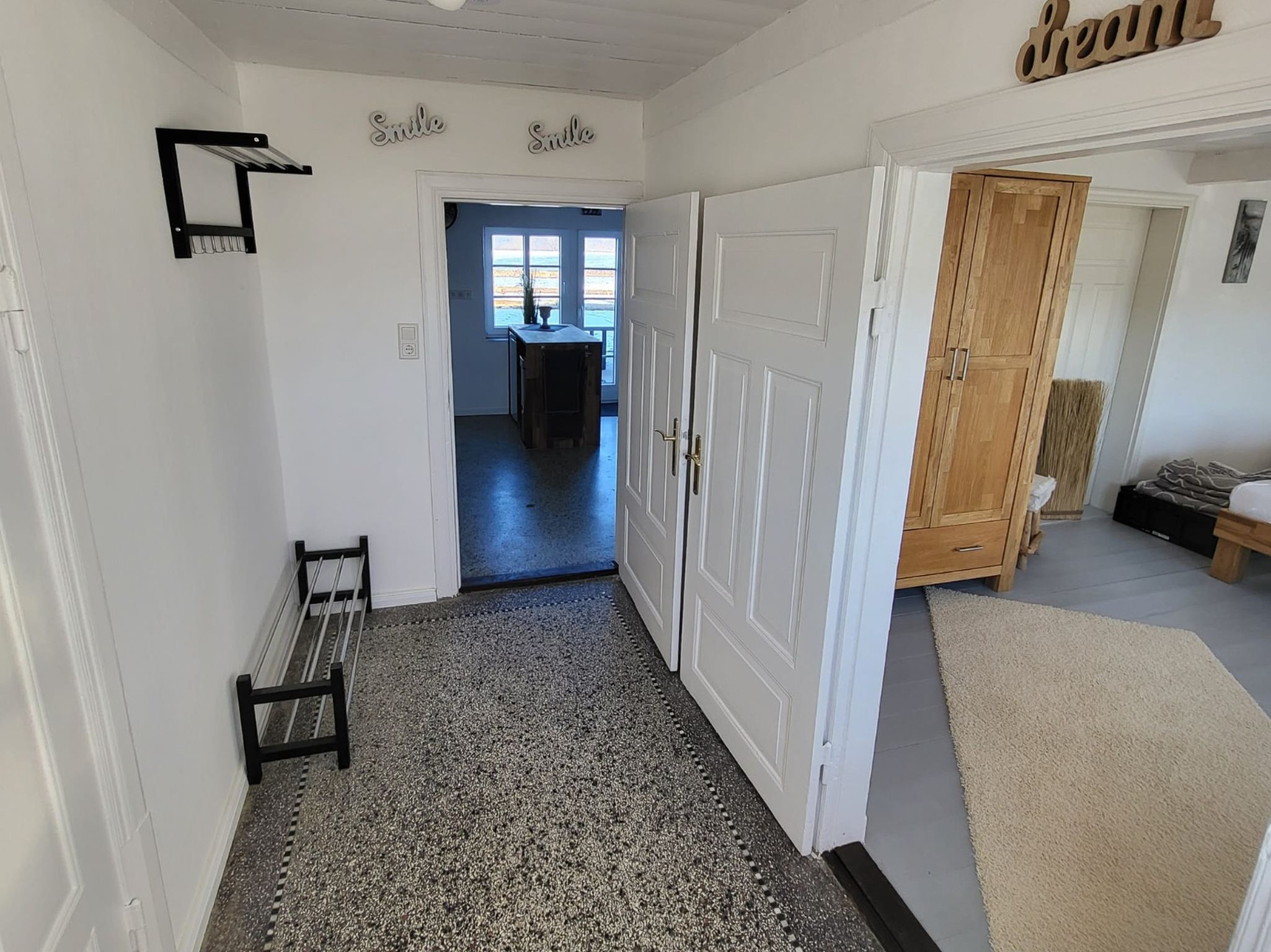 Das ebenerdige Hanne Herrmann Hus bietet bis zu 6 Personen (plus 1 Kleinkind) in einem charmanten Ambiente und Moderne viel Raum für einen erholsamen Urlaub. Gerade zur kälteren Jahreszeit wird durch den Kaminofen für eine wohlige Auszeit gesorgt.