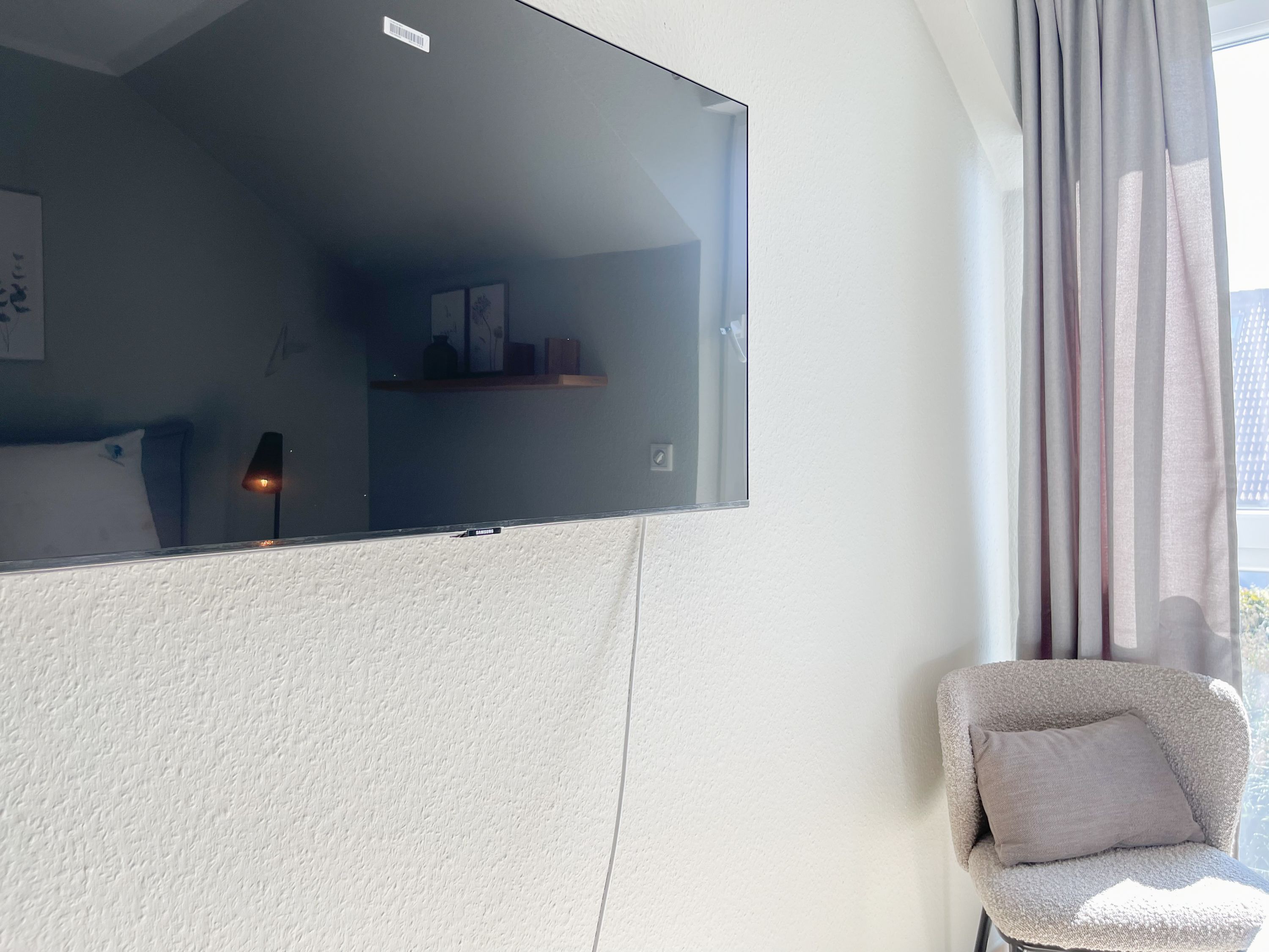 Die großzügige Einbauküche ist bestens ausgestattet und lädt zum gemeinsamen Kochen ein. Der anschließende Essbereich, mit großem Esstisch und gemütlichen Sesseln, bietet ausreichend Platz für gemeinsame Mahlzeiten und geselliges Beisammensein. Im Eingangsbereich befindet sich eine Garderobe und ein neuwertiges Tageslichtbad mit Dusche, Waschbecken und WC. Waschmaschine und Trockner sind im separaten Abstellraum untergebracht, ebenfalls im Erdgeschoss. Im Obergeschoss gibt es 2 separate Schlafzimmer (eines mit zusätzlichem Schreibtisch für das home office), die mit hochwertigen Boxspringbetten (180x200), Kleiderschränken und TV eingerichtet sind. Der dritte Raum ist als weiterer Wohnbereich mit hochwertigem Schlafsofa und Kleiderschrank gestaltet und kann sowohl als gemütlicher Rückzugsort oder als zusätzliches Schlafzimmer genutzt werden. Das zweite neuwertige Bad ist sehr großzügig angelegt mit Badewanne, Dusche, Waschtisch, WC, Fußbodenheizung sowie Fenster und befindet sich ebenfalls im Obergeschoss. Alle Fenster des Hauses sind mit elektrischen Außenjalousien versehen. WLAN steht selbstverständlich kostenlos zur Verfügung. Vor dem Haus befinden sich zwei Parkplätze. (1 Carport und 1 Außenstellplatz). 2-3 Fahrräder können sicher und trocken im Schuppen am Haus untergestellt werden.