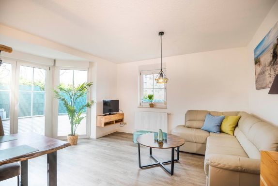 • Wohnzimmer: WLAN, Flat-TV, Esstisch für 6 Personen, Couch mit Bettfunktion, Kommode,