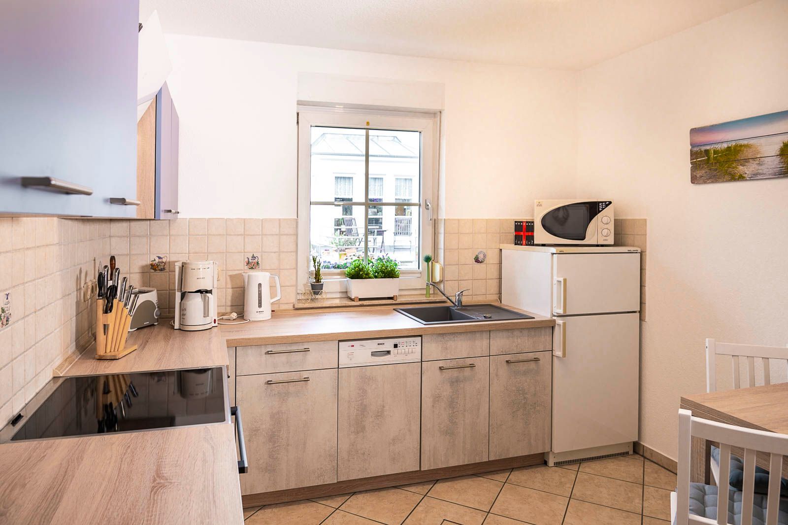 • Küche: Voll ausgestattet mit E-Herd, Ceranfeld und Backofen, Kühlschrank und Gefrierfach, Spülmaschine, Mikrowelle und mehr.