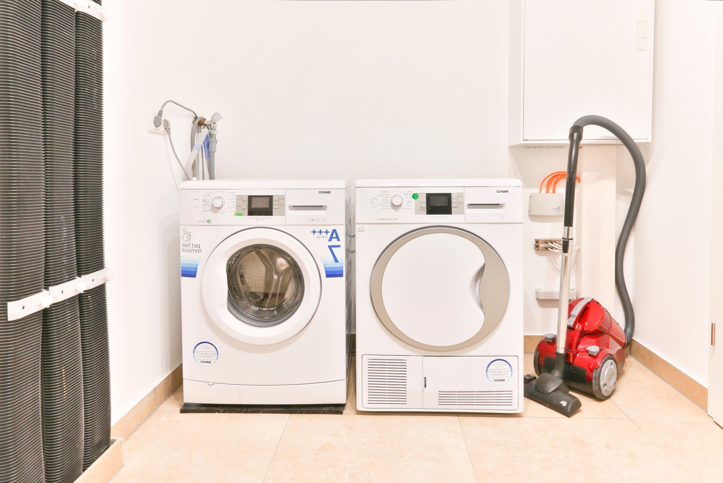 Waschmaschine und Wäschetrockner gehören mit zur exklusiven Ausstattung sowie 2 PKW-Stellplätze pro Haushälfte.