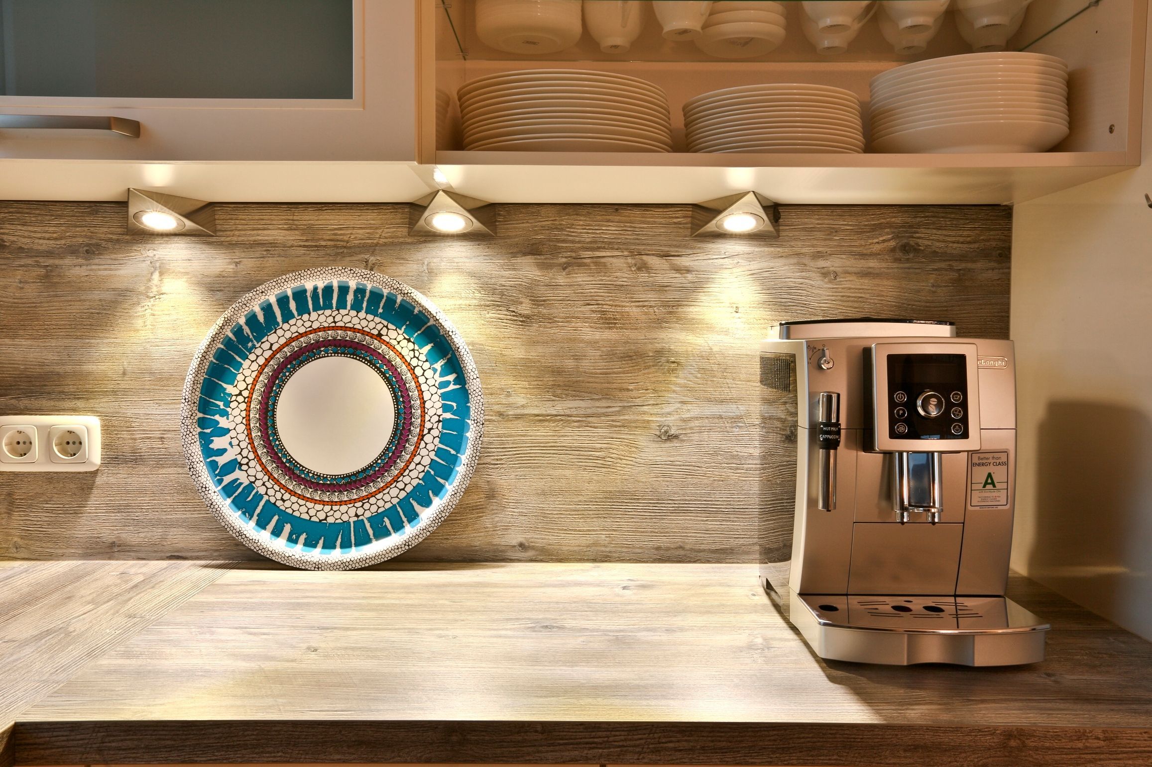 Heller großzügiger Wohnbereich mit hochwertigen Möbeln und Kamin, angrenzender komplett ausgestatteter Hochglanz-Designer-Küche mit Kaffeevollautomat von DeLonghi und Kochinsel, 3 edlen Schlafzimmern mit höchst komfortablen Box-Spring-Betten (in einem Schlafzimmer befindet sich ein zusätzliches TV-Gerät), 1 Gäste-Bad mit Dusche und 1 Bad en suite mit Regendusche und finnischer Sauna.