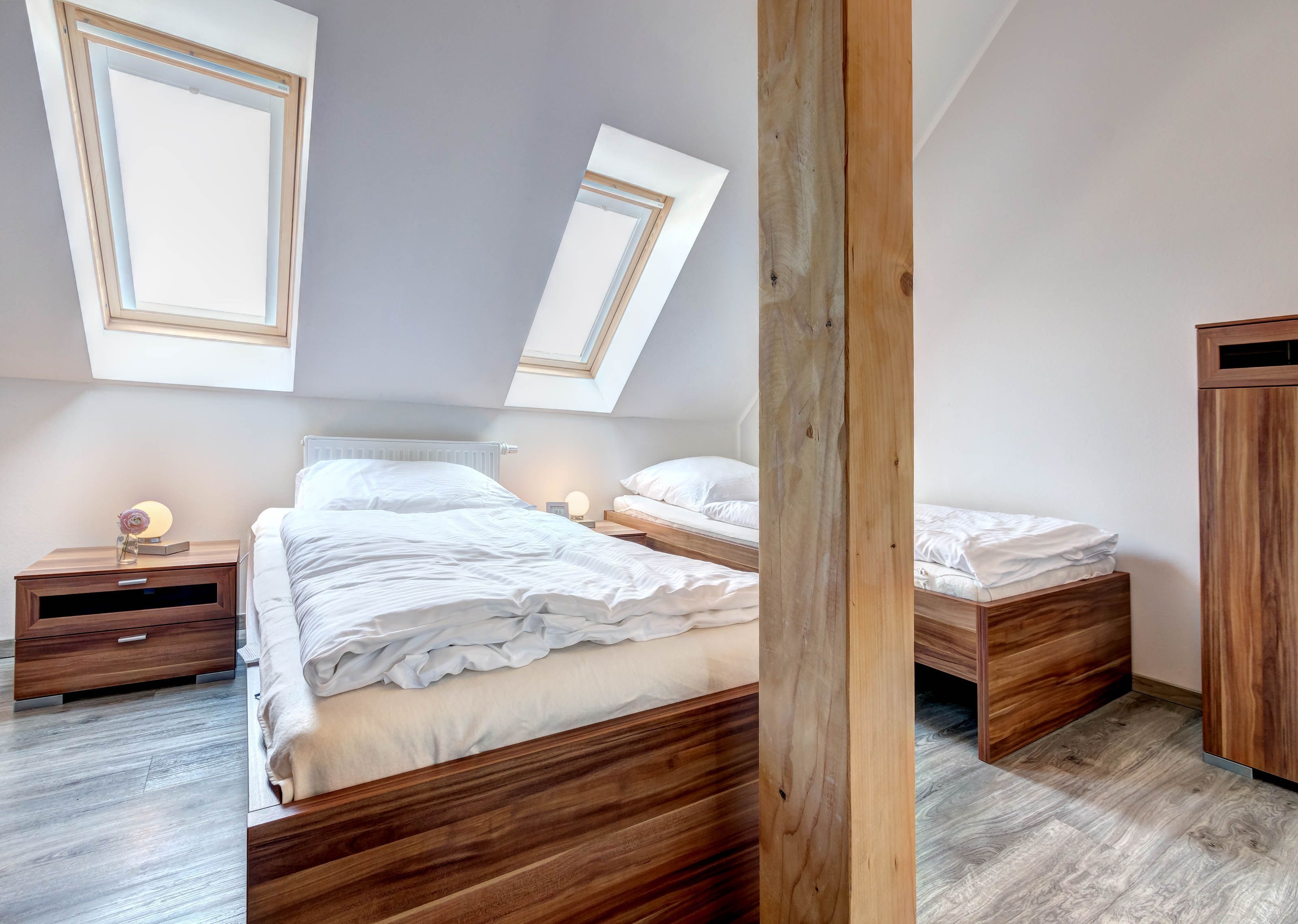 Das Nichtraucherhaus bietet im Dachgeschoss einen hellen Wohnbereich mit gemütlicher Couch, eine offene, gut ausgestattete Küche, zwei Schlafzimmer und ein modernes Badezimmer. Ideal für Paare, Familien oder Freunde, die gemeinsam entspannen möchten.