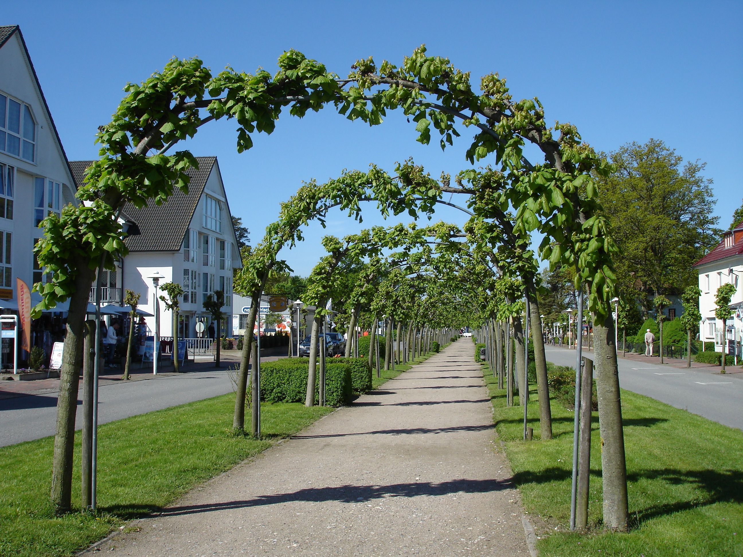 In der großzügig und breit angelegten Strandstraße flaniert man in deren Mitte durch einen ca. zwei km langen natürlichen Laubengang.