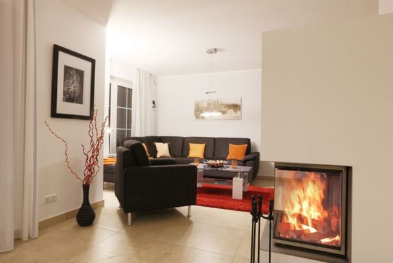 Wellness pur mit einem von 3 Seiten einsehbaren Kamin für gemütliche Stunden.