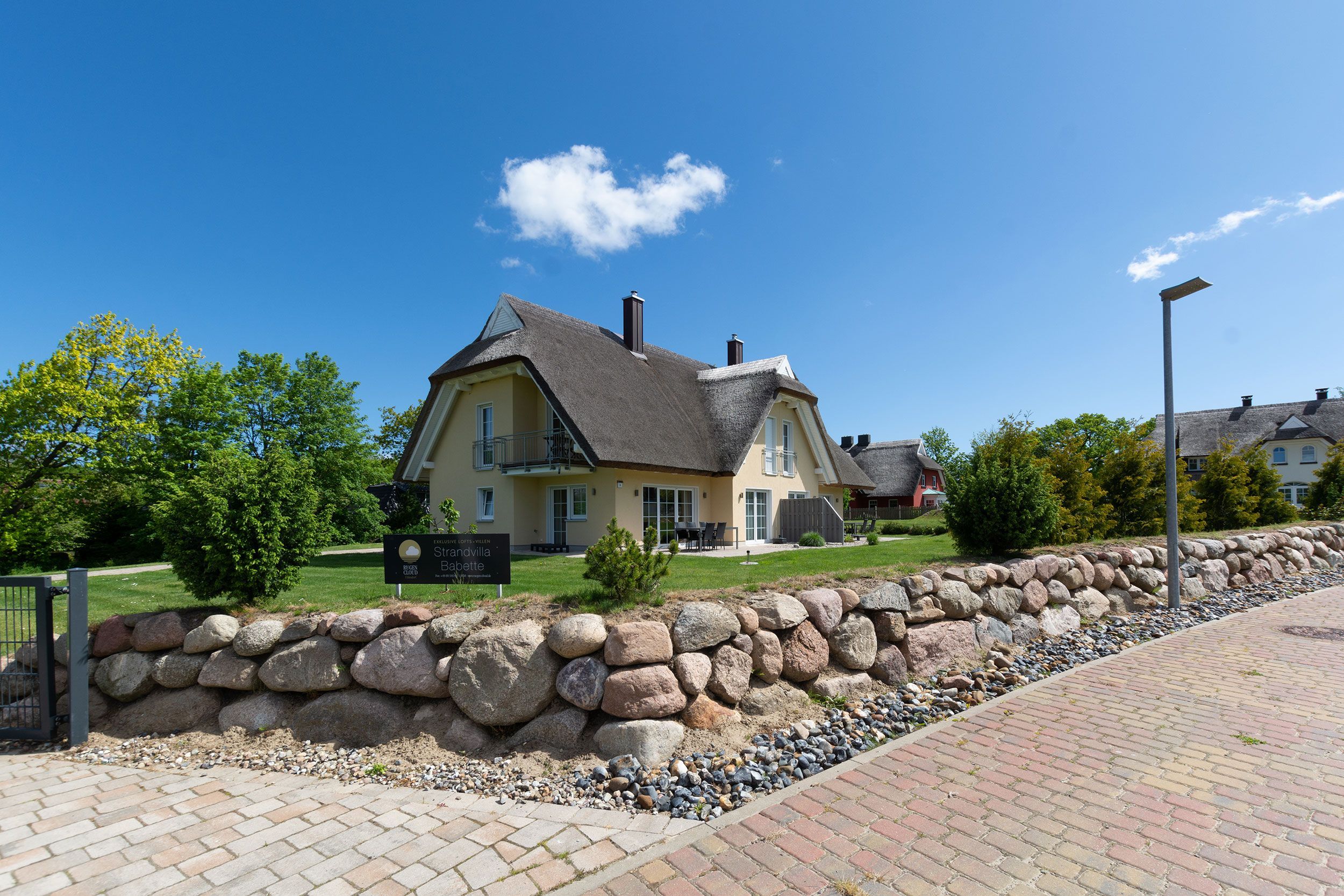 Sauna, Kamin und ein 2600 m² großes Grundstück - eingefügt in einem Ensemble von Reetdach Villen. Die im Januar 2015 fertiggestellte Strandvilla Babette kann bis zu 12 Personen beherbergen auf 260 m² Wohnfläche, aufgeteilt in 2 exklusive Haushälften. Indentisch in massiven Bauweise bieten sich für jeweils bis ca. 6 Personen exklusiven Urlaubsraum und eignet sich sowohl für Familien aber auch idealer Weise für Freunde oder Bekannte.