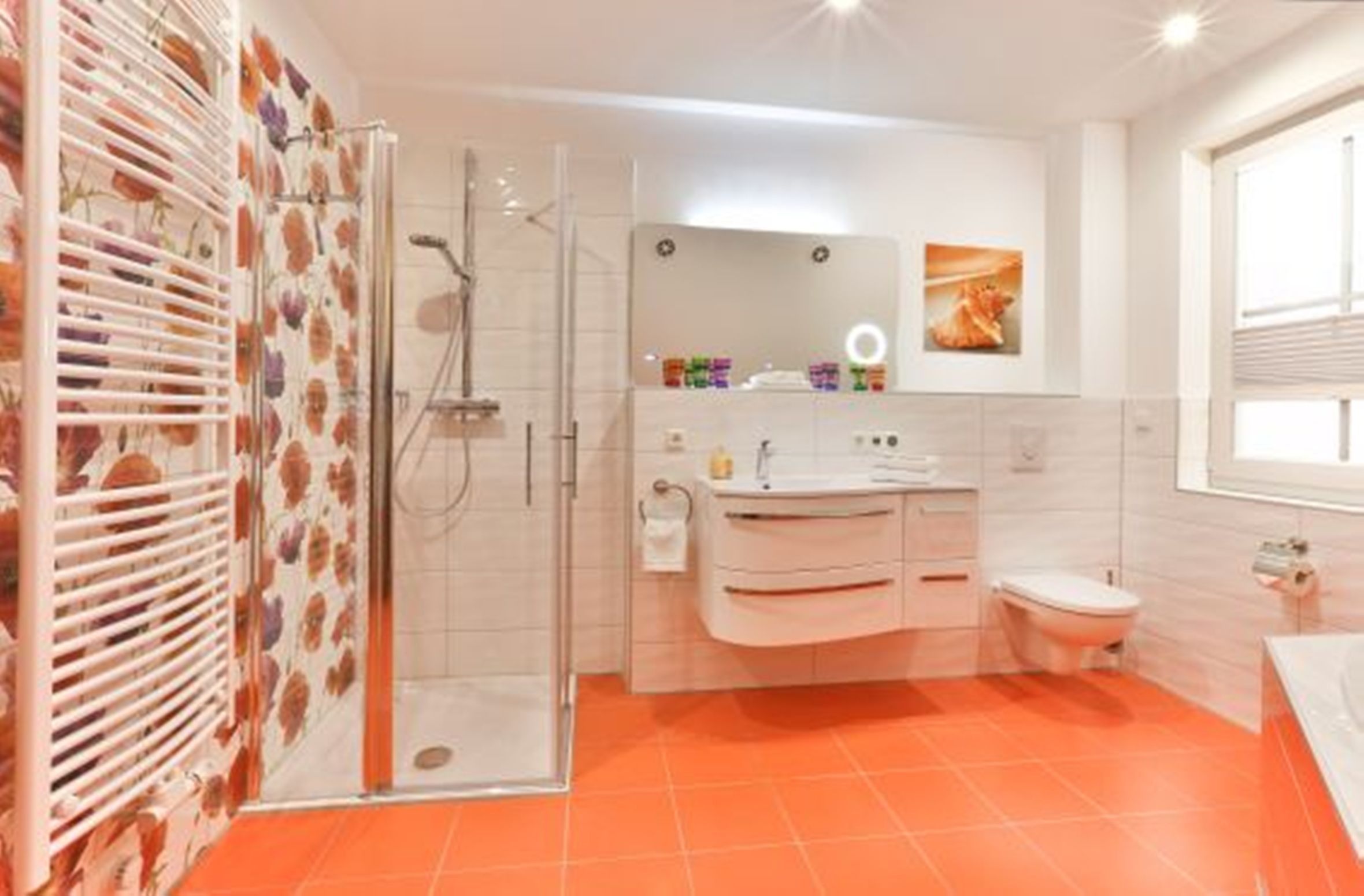 Das gesamte Erdgeschoss verfügt über Fussbodenheizung und im Obergeschoss das grosse Badezimmer.