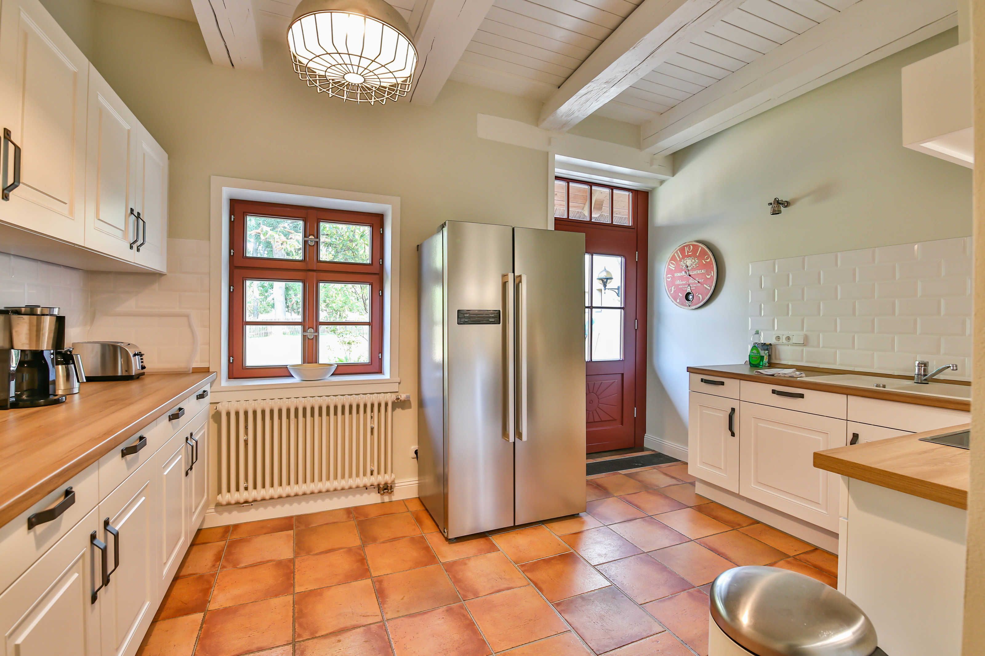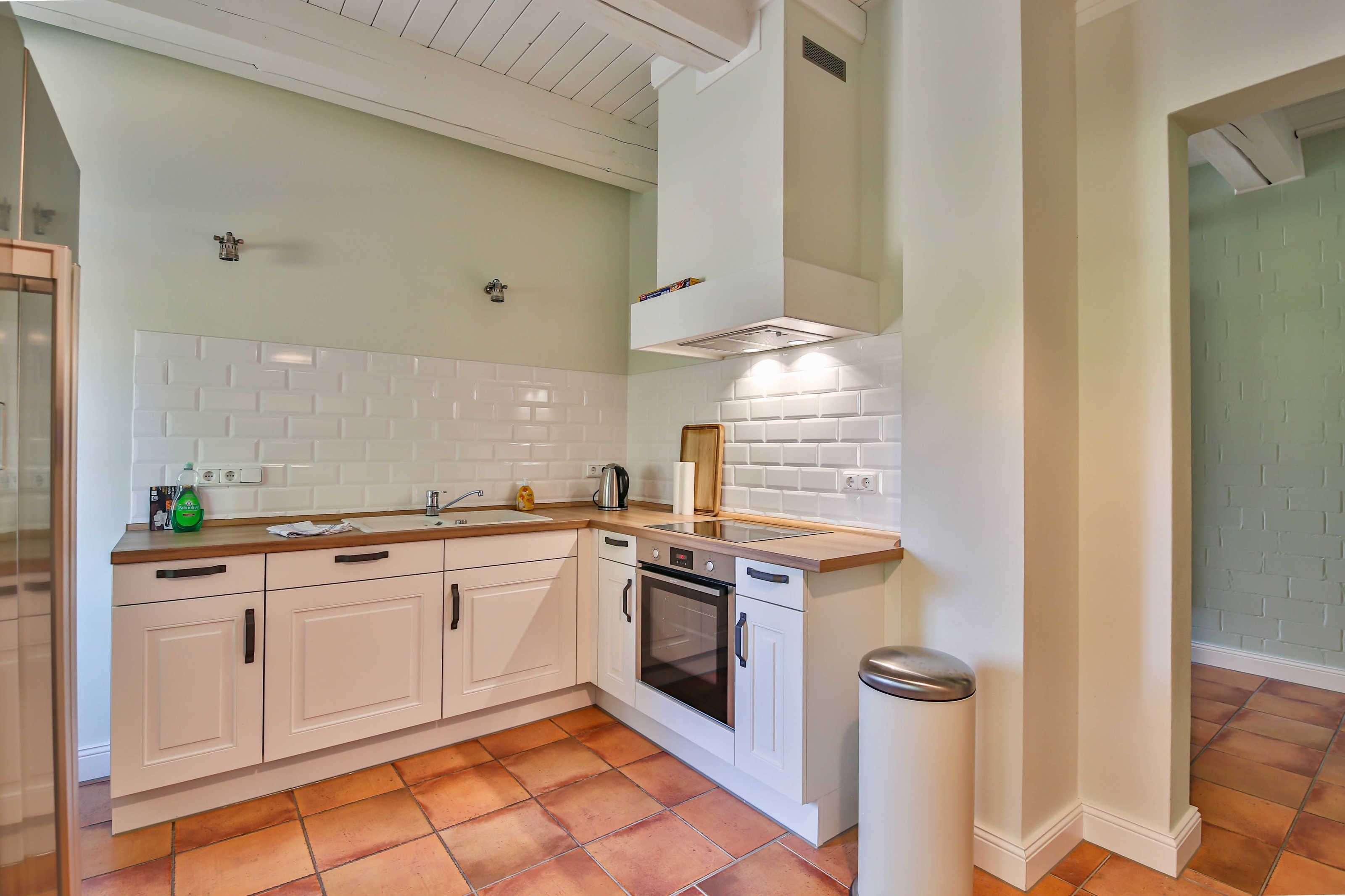 - Komplett eingerichtete Küche mit Ofen, Herd und Mikrowelle