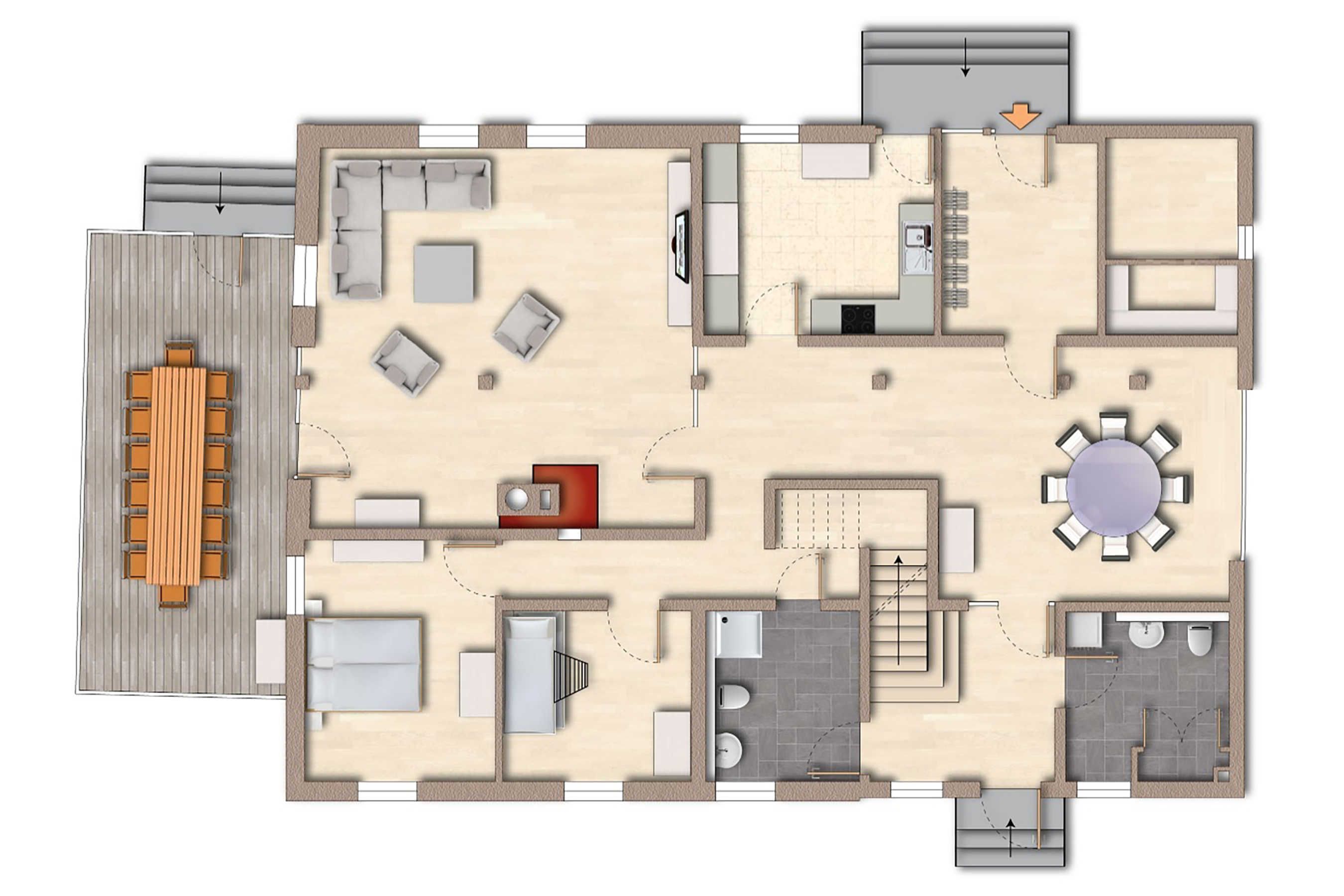 - 3 Bäder mit Dusche und WC