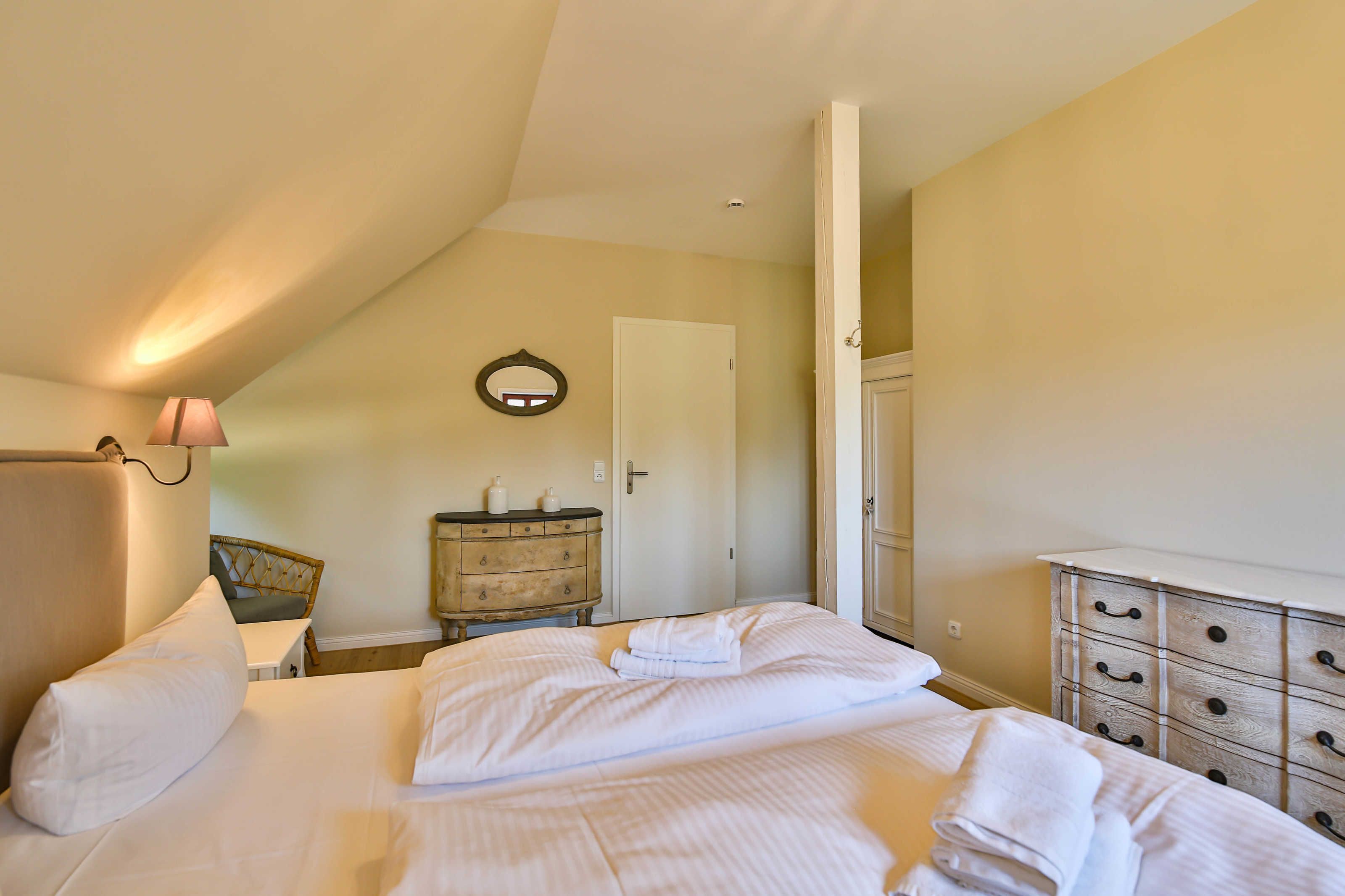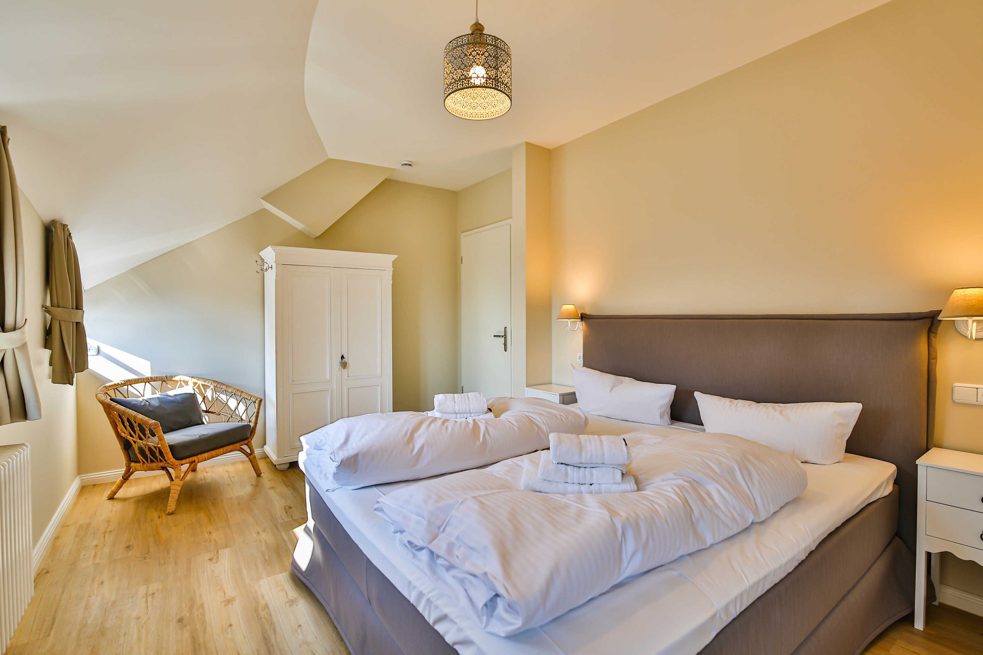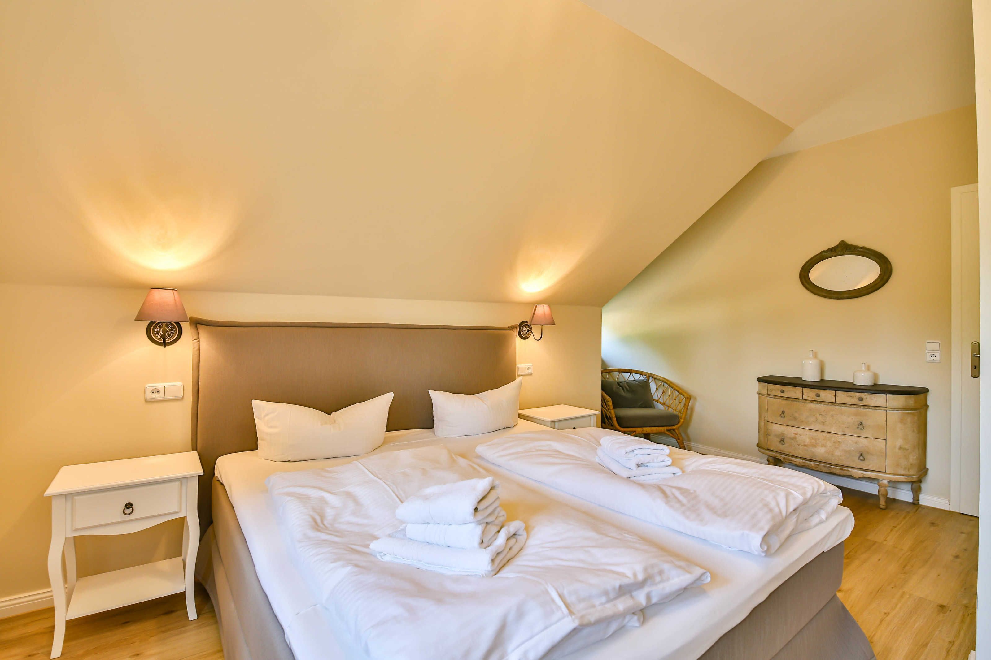 Im gepflegten Garten befindet sich eine idyllische Sitzmöglichkeit, zwei Strandkörben.