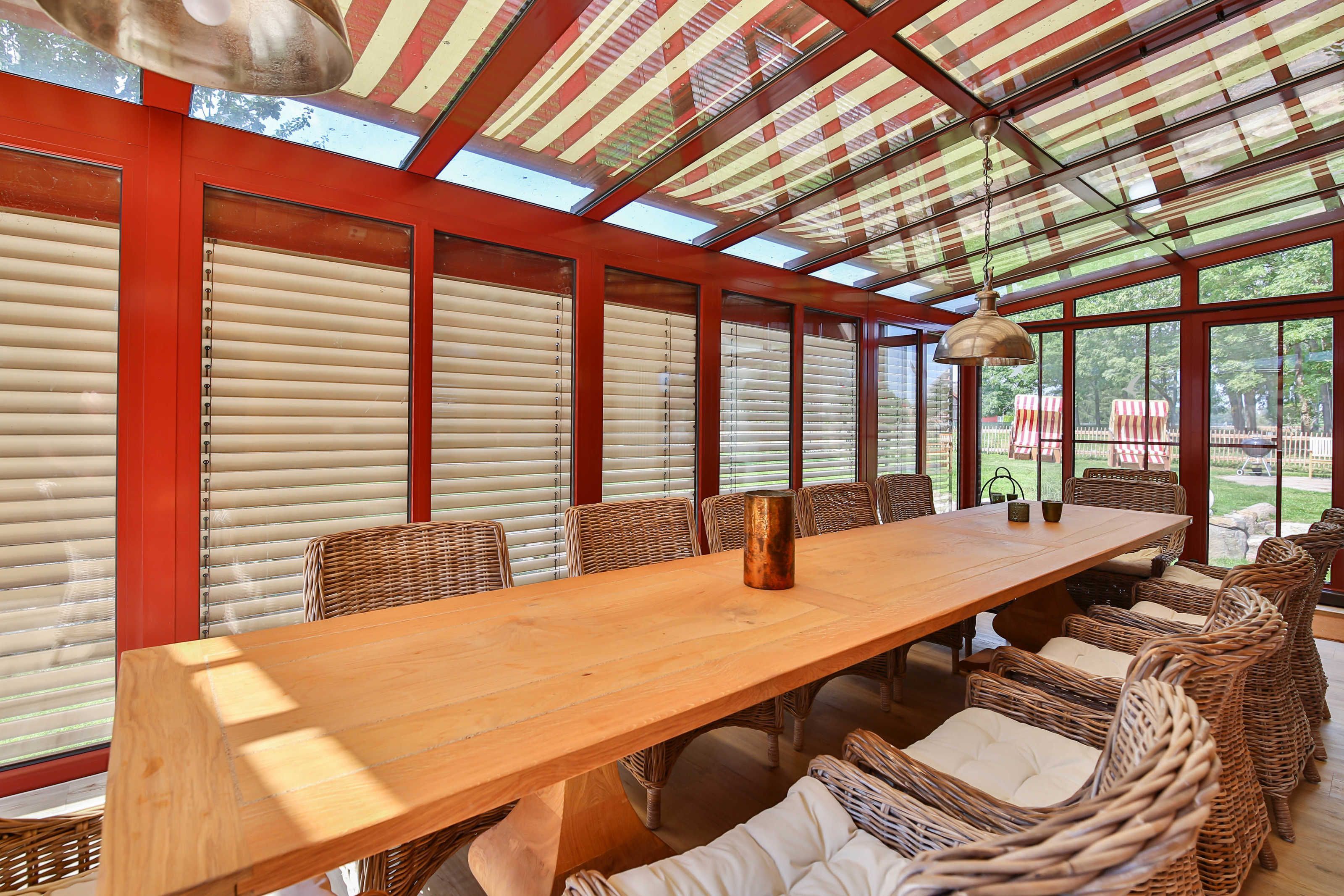 Das Haus Rotkehlchen im Sonnenhof ist ein exklusives Ferienhaus mit viel Platz für die ganze Familie. Das Haus bietet 6 Schlafzimmer, eine voll ausgestattete Küche, ein großes Wohnzimmer, 3 Bäder, einen Wintergarten und eine Sonnenterrasse im Garten. Umgeben vom Achterwasser und der idyllischen Natur des Lieper Winkels lädt das Ferienhaus zum Verweilen und Entspannen ein. Zu empfehlen für Urlaub mit der Familie oder Freunden mit 12 Erwachsene und 2 Kinder.