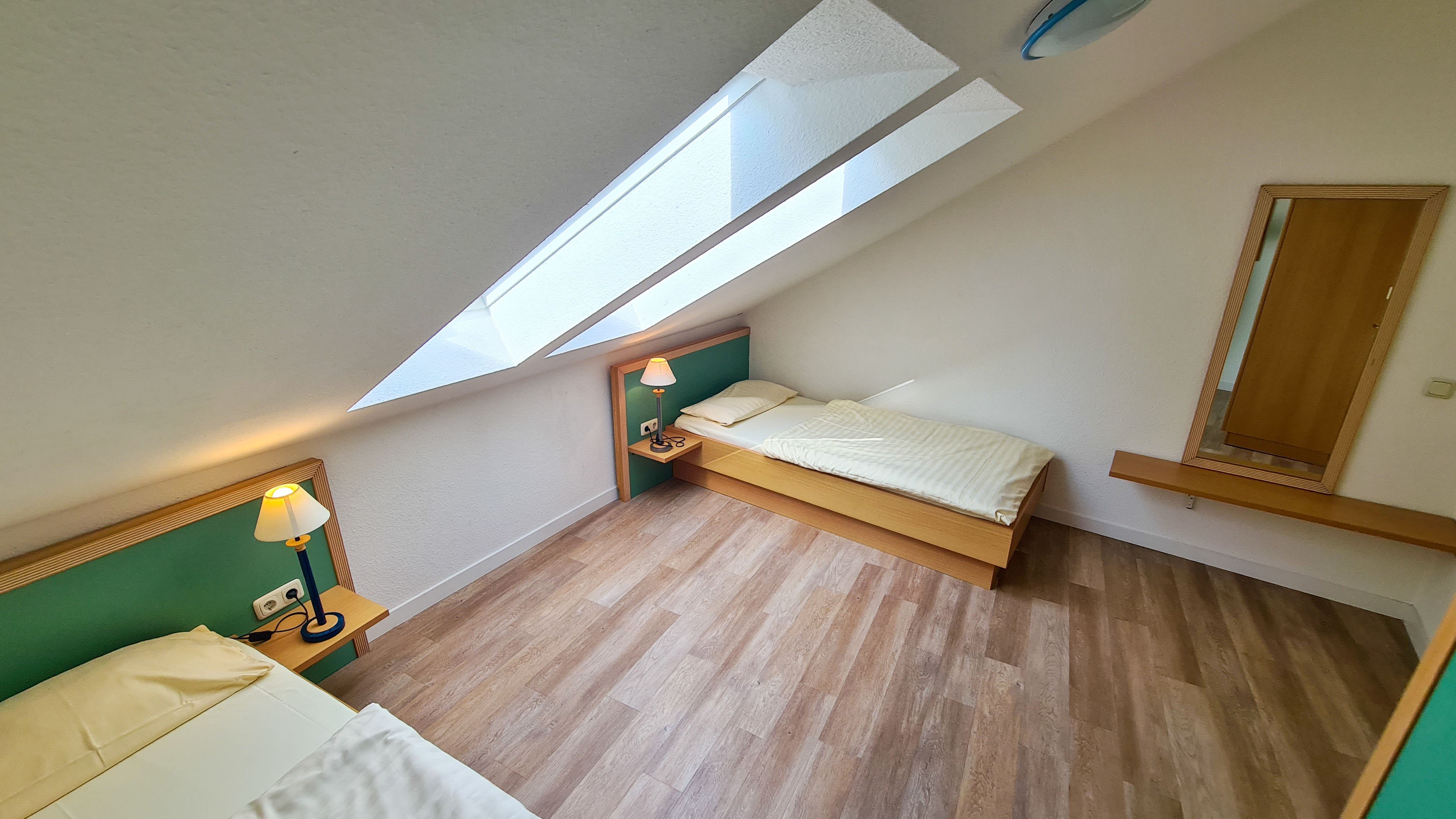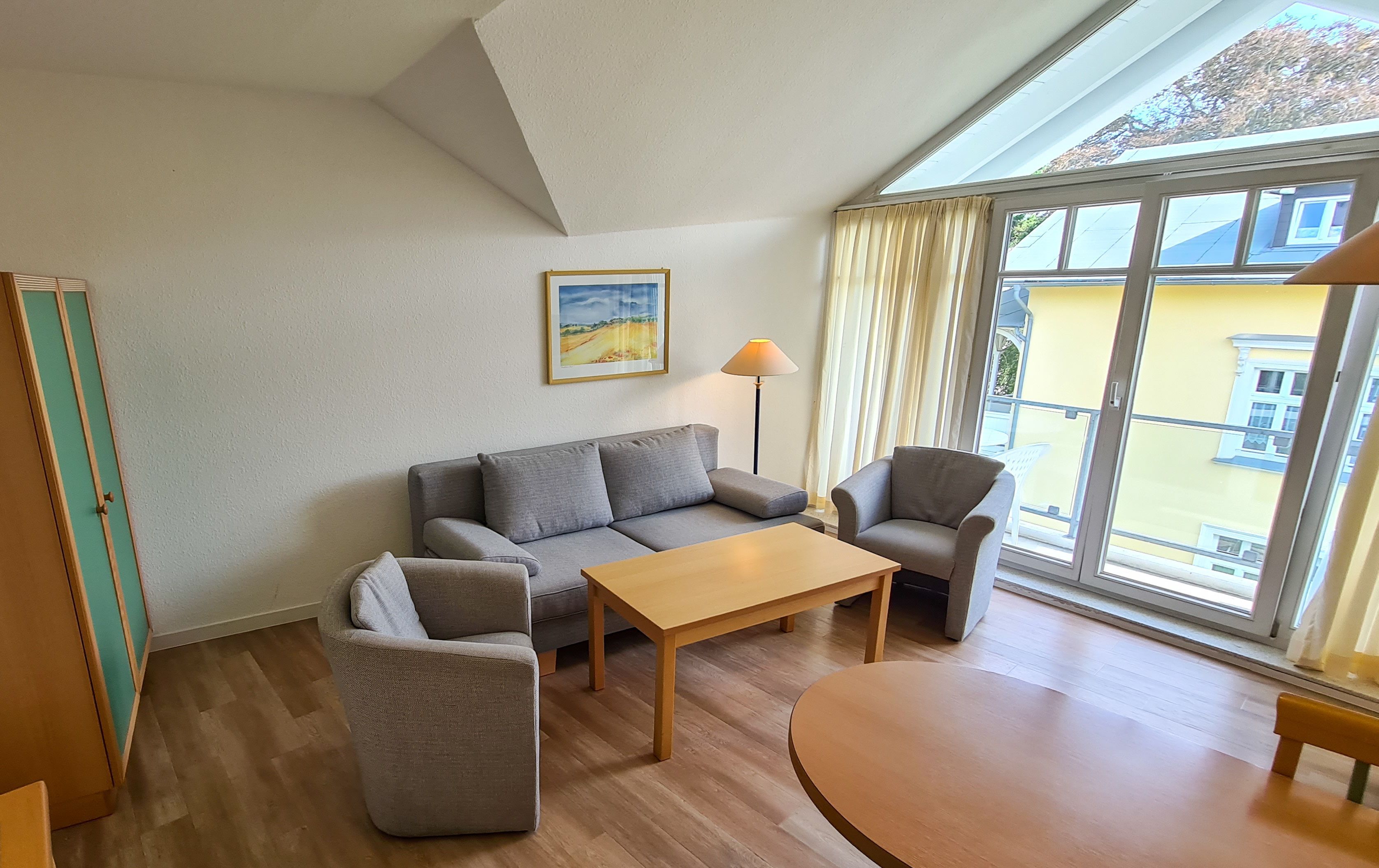 Das modern ausgestattete 2-Raum-Nichtraucher-Appartement im Dachgeschoss ist 42 m² groß.