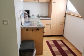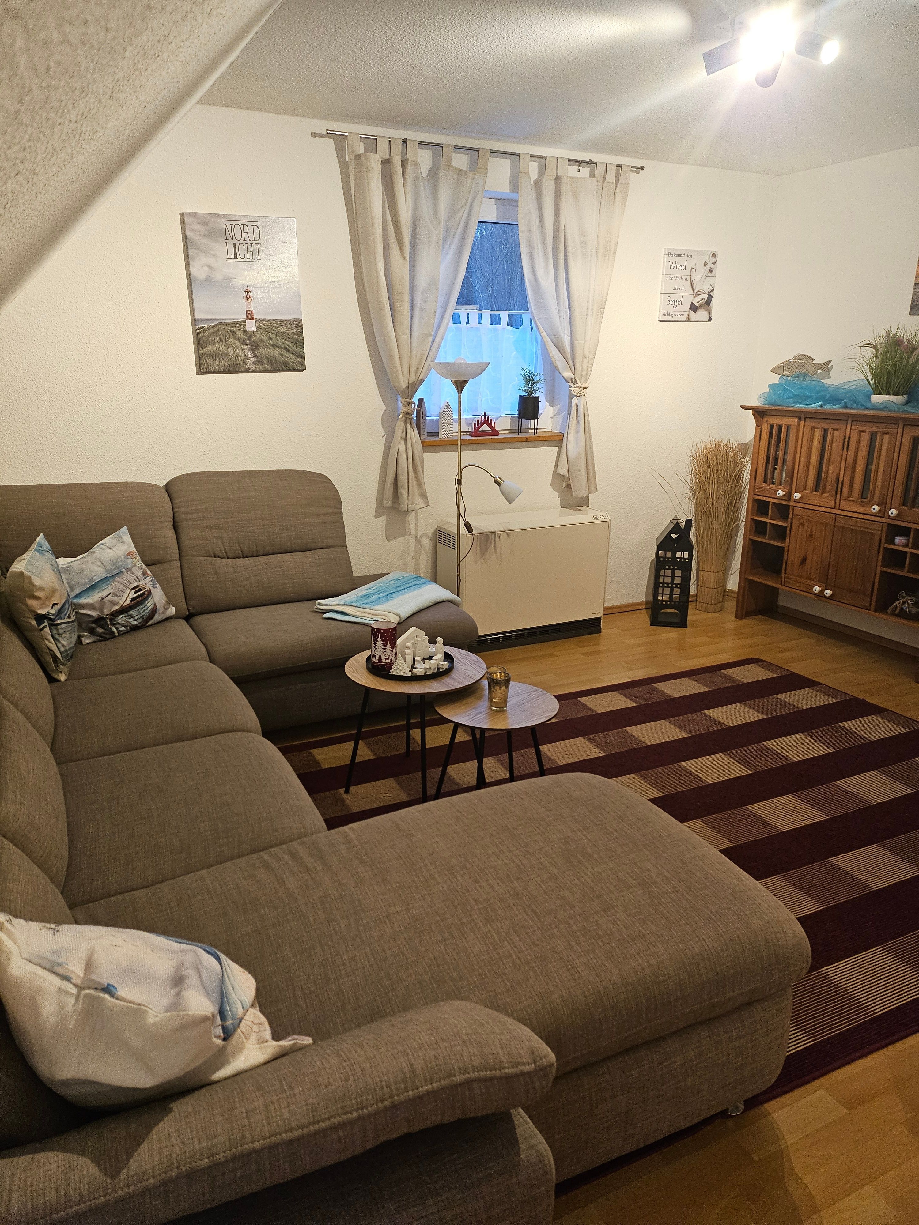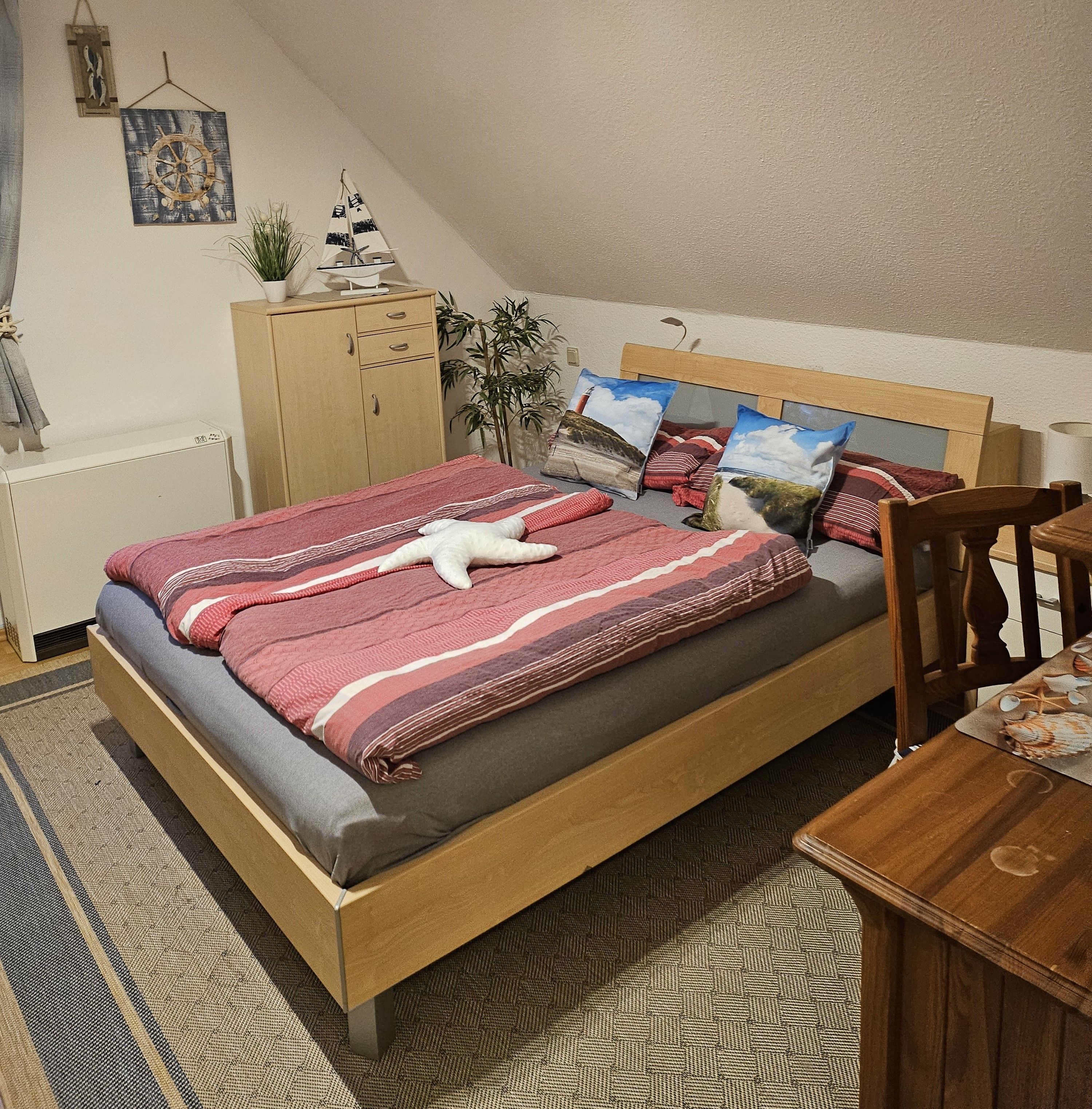 Unsere Ferienwohnung Fiete ist eine 45 m² Dachgeschosswohnung bestehend aus einem Schlafzimmer mit individuell verstellbarem Bett, einem Wohnzimmer mit ausziehbarer großer EckCouch und einem SMART-TV, einer voll ausgestatteteten Küche (Spüle, Herd, Backofen, Kühlschrank, Mikrowelle, Toaster, Wasserkocher, Kaffeemaschine+PAD Maschine) und einem Badezimmer mit Dusche und WC.Bei Ihrer Anreise, bekommen Sie ein Wilkommensgruß.