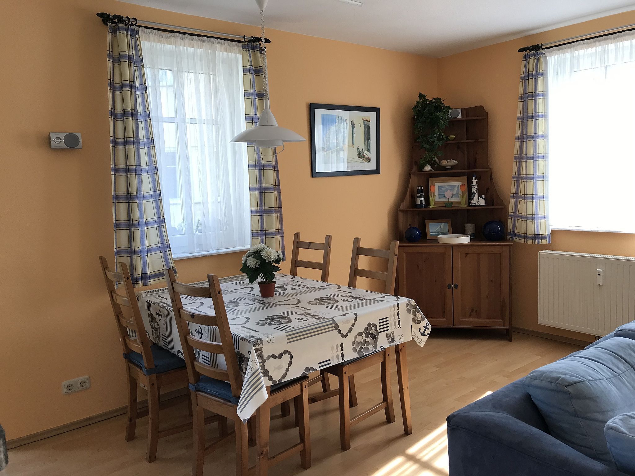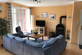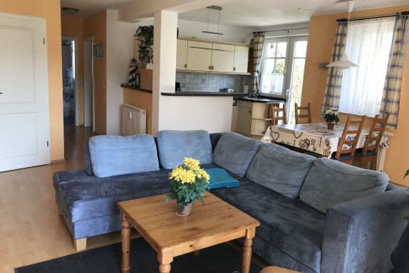 Die geräumige und gemütliche 3-Zimmer-Ferienwohnung im Erdgeschoss des charmanten Bernsteinhauses bietet auf 65 m² ausreichend Platz für bis zu 4 Personen. Sie verfügt über einen gemütlichen Wohnbereich mit einer bequemen Couch und einem Kamin. Ein Essbereich bietet Platz für die ganze Familie. Die offene Küche ist komplett ausgestattet mit u.a. Cerankochfeld mit Backofen, Geschirrspüler, Mikrowelle, Kühl-Gefrierkombination, Kaffeemaschine, Wasserkocher und Toaster.