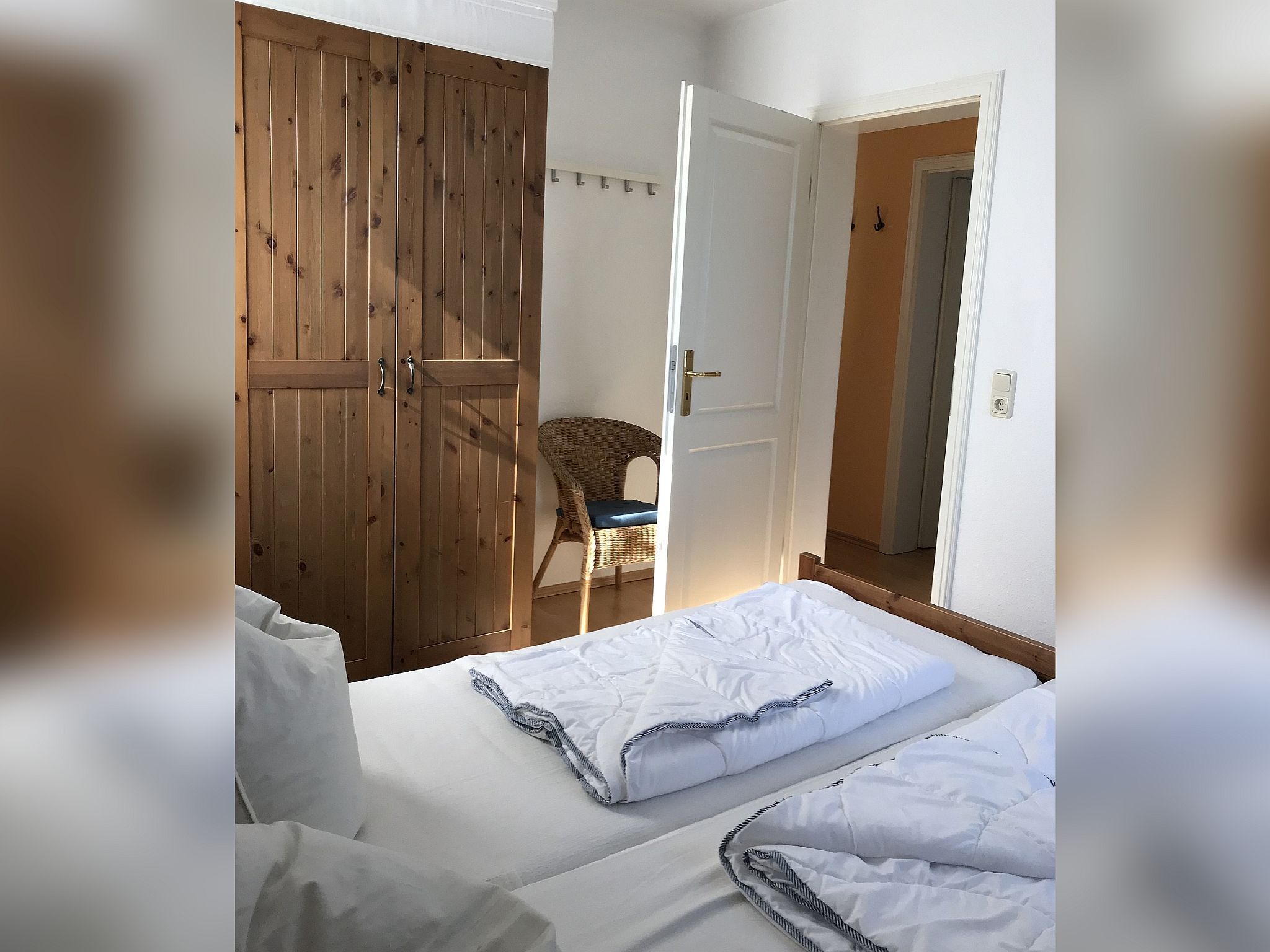 Die Wohnung verfügt über ein Schlafzimmer mit Doppelbett und ein Kinderzimmer mit zwei Einzelbetten. Beide Zimmer sind mit Vorhängen ausgestattet, die eine vollständige Verdunkelung ermöglichen. Das Bad mit Dusche verfügt über ein Fenster, das für ausreichend Tageslicht und gute Belüftung sorgt. Zur weiteren Ausstattung gehören ein praktischer Abstellraum, ein Flachbildfernseher, eine Stereoanlage und kostenloses WLAN.