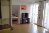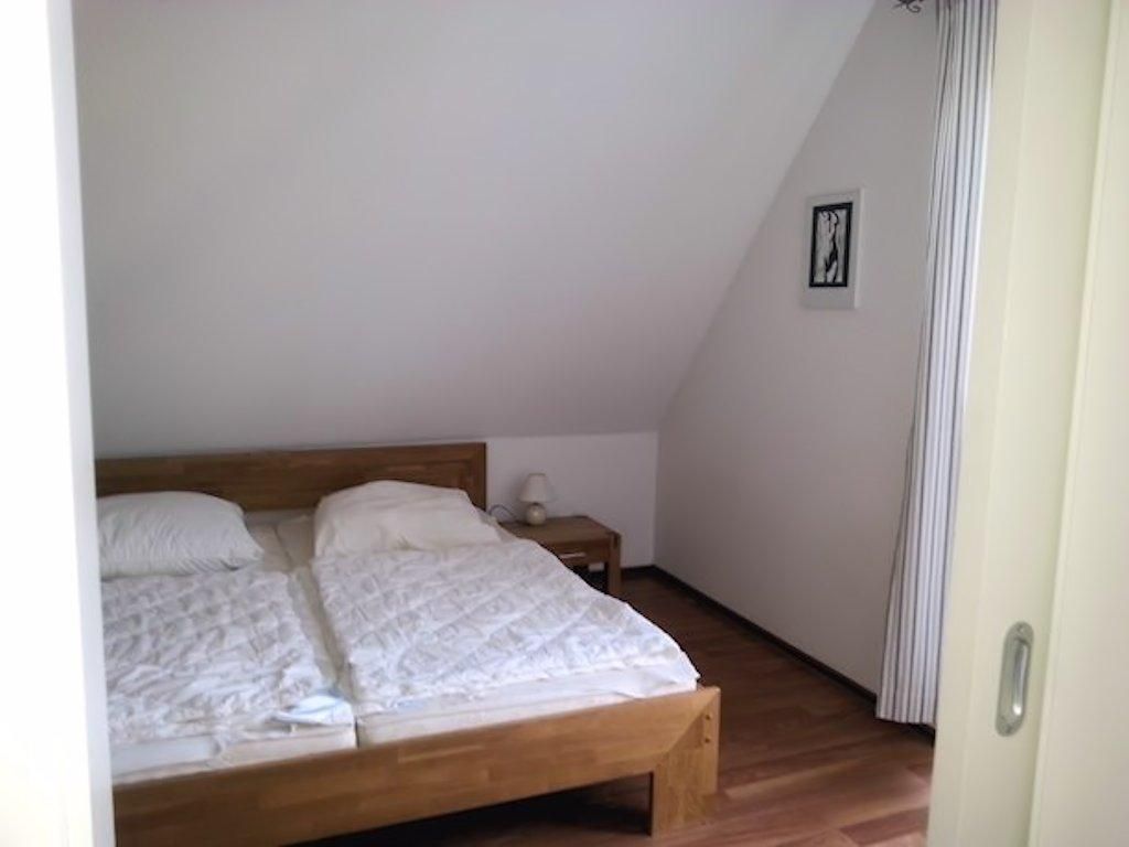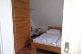 Ein Schlafzimmer mit Doppelbett befindet sich im unteren Bereich der Wohnung. Das zweite Schlafzimmer - ein Galerieschlafzimmer mit 2 Einzelbetten - im oberen Bereich. Dieser Bereich ist durch eine Raumspartreppe erreichbar.