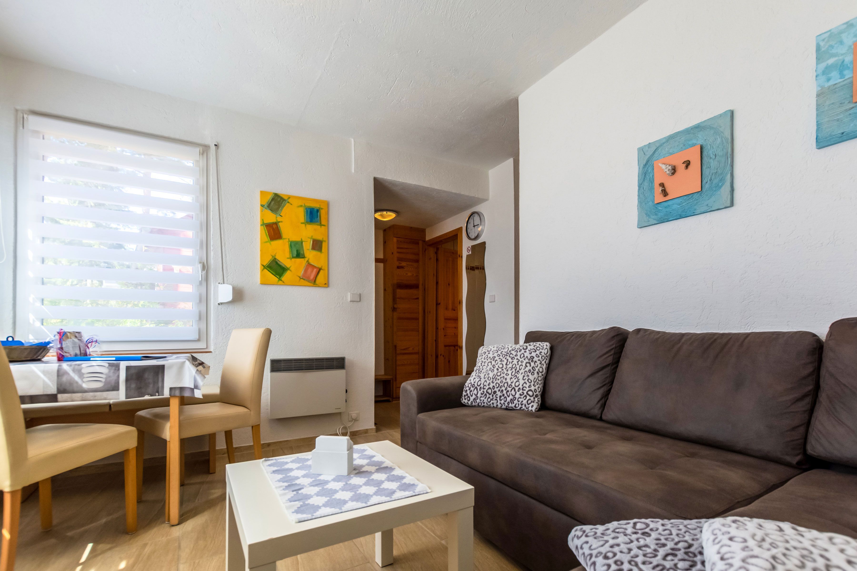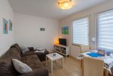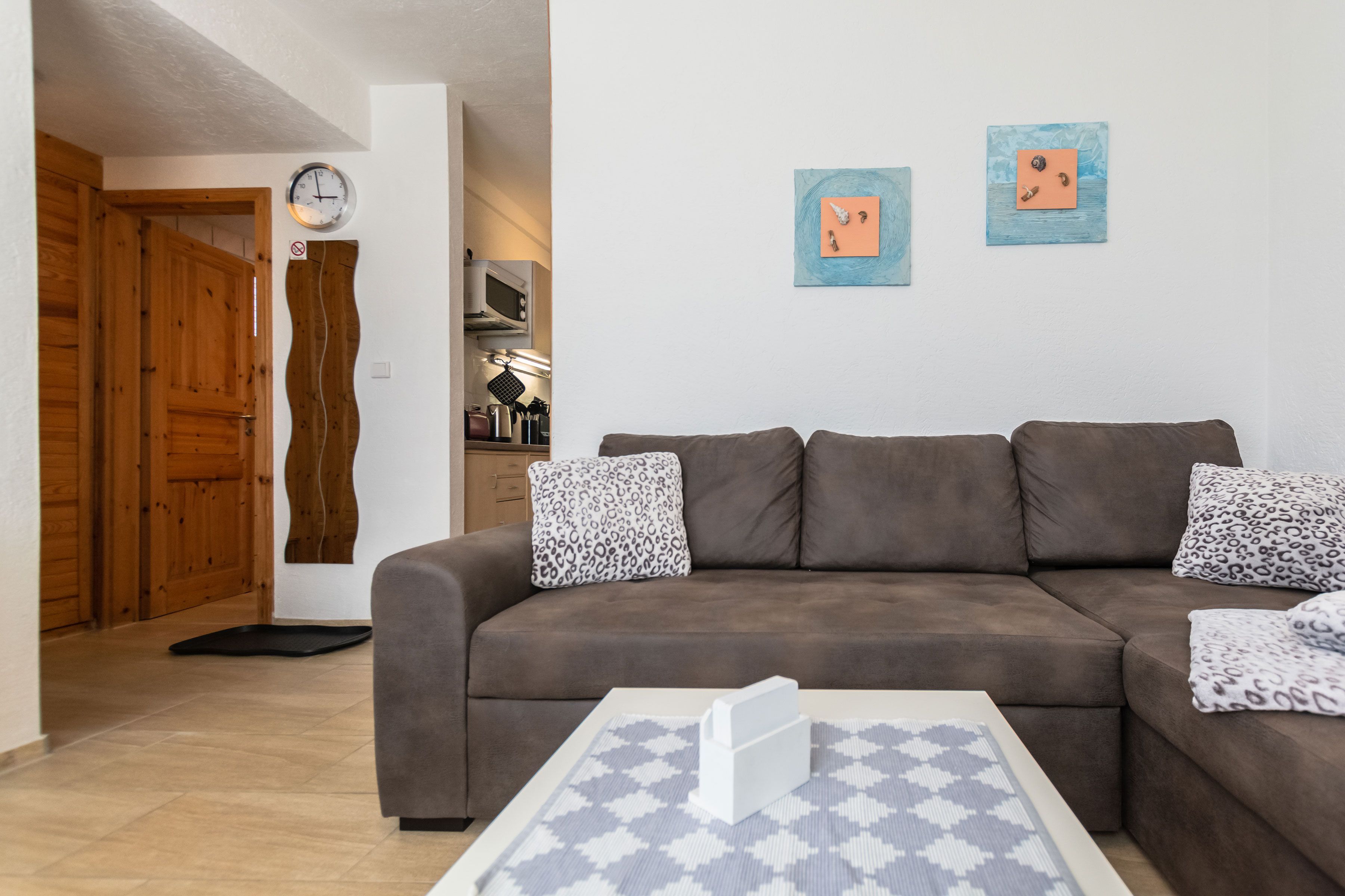 Der gemütliche Wohnbereich überzeugt mit einer Couchgarnitur, einem Fernseher und einem Radio. Zudem können hier 2 weitere Personen auf dem Schlafsofa die Nächte verbringen.